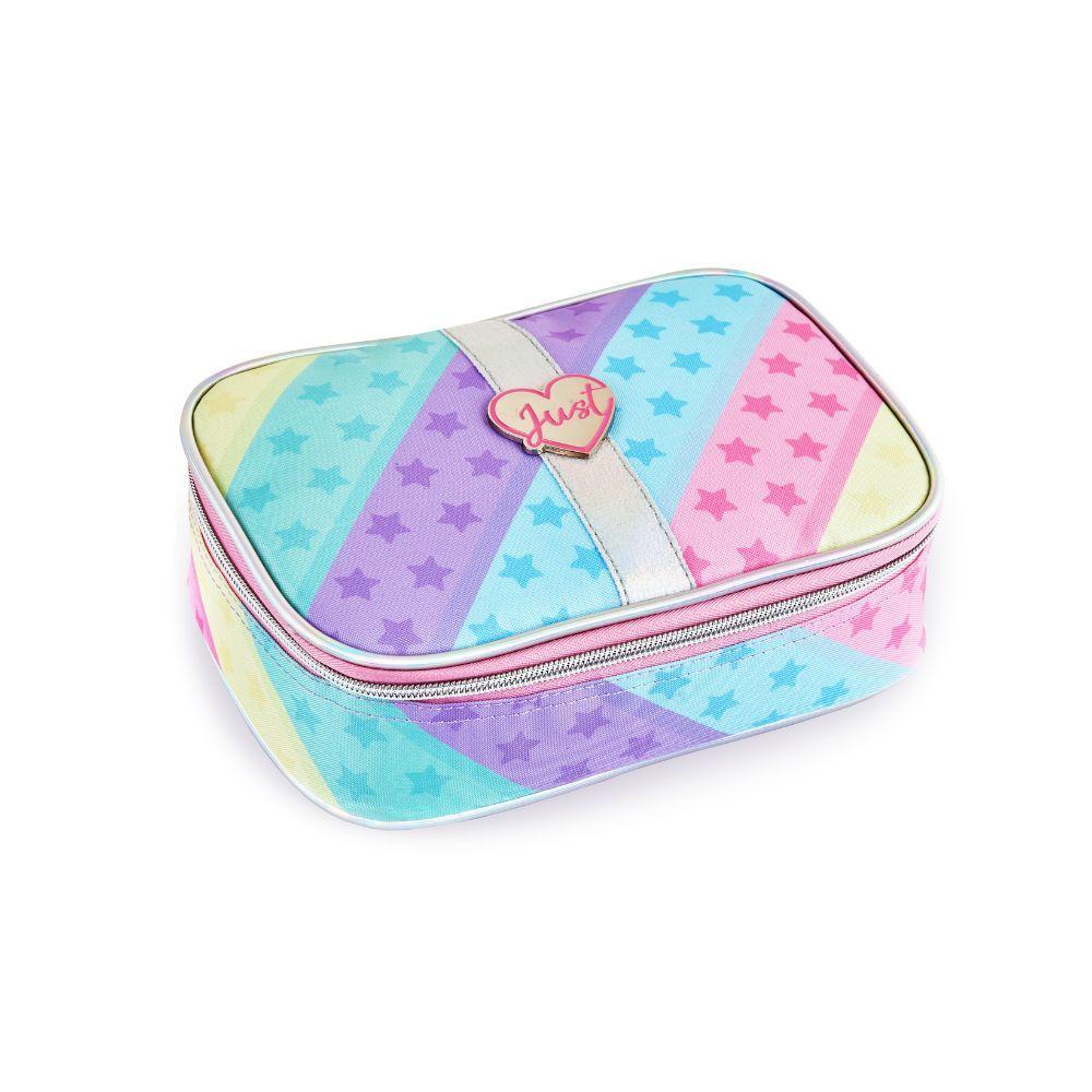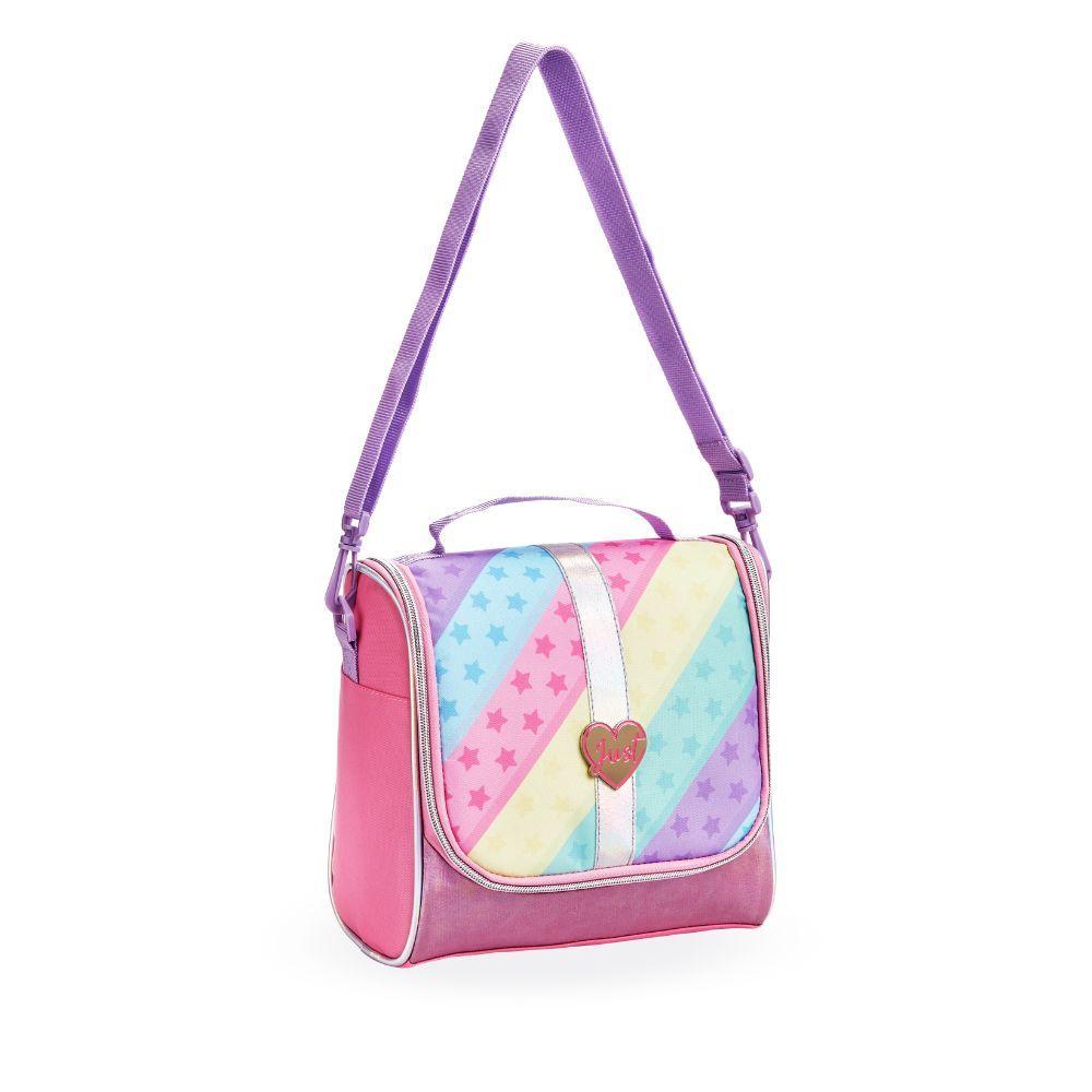 Kit Mochila De Rodinhas + Lancheira Térmica + Estojo Box Just Love Denlex PastelKit Mochila de Rodinhas + Lancheira Térmica + Estojo Box Just Love DENLEX Pastel -O Kit Mochila de Rodinhas + Lancheira Térmica + Estojo Box Just Love DENLEX é a combinação perfeita para quem busca praticidade, estilo e conforto no dia a dia escolar. A mochila de rodinhas oferece facilidade no transporte, com amplo espaço interno e design moderno. A lancheira térmica mantém os alimentos frescos por mais tempo, ideal para o intervalo ou passeios. Já o estojo box é compacto e funcional, proporcionando organização para lápis, canetas e outros materiais essenciais. Com estampa vibrante e delicada, o Kit Just Love DENLEX é a escolha ideal para quem deseja praticidade com muito charme e personalidade.Características do Produto:Mochila de Rodinhas: Amplo compartimento principal, ideal para transportar livros, cadernos e outros materiais escolares. Rodinhas e alça retrátil para fácil transporte.Lancheira Térmica: Mantém alimentos frescos por mais tempo, com espaço suficiente para lanche e garrafinha. Zíper de qualidade e fácil acesso.Estojo Box: Compacto e organizado, perfeito para armazenar materiais escolares como lápis, canetas e outros itens essenciais.Conjunto com design moderno e estampa Just Love.Produzido pela DENLEX, marca reconhecida pela qualidade e estilo.Dimensões AproximadasMochila: ;58cm (altura) x 32cm (largura) x 15cm (profundidade).Lancheira Térmica: ;25cm (altura) x 23cm (largura) x 12cm (profundidade).Estojo Box: ;15cm (altura) x 23cm (largura) x ;5cm (profundidade).Características Gerais do Produto:Acompanha o produto: - 1 Kit Mochila de Rodinhas + Lancheira Térmica + Estojo Box Just Love DENLEX