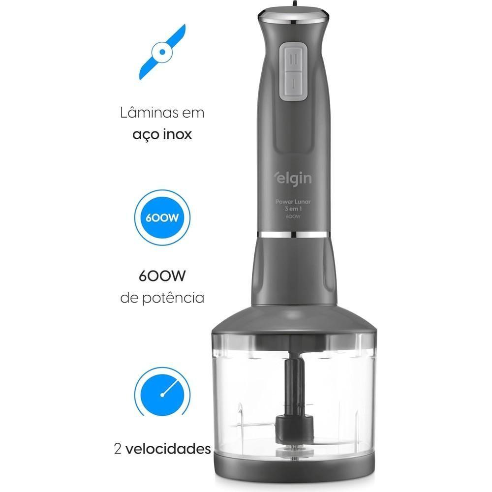 Mixer De Alimentos Cinza Lunar Inox 600W 3 Em 1 Copo 700ml Elgin 220V