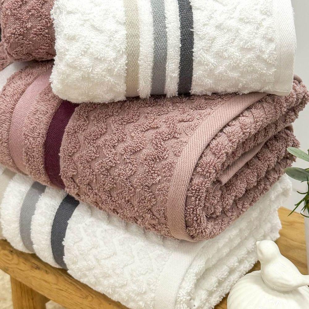 Jogo De Toalha Banhão Trento 4 Peças 100% Algodão Branco/azaleiaConforto e toque macio para sua rotinaO Jogo de Toalha Trento 4 peças foi pensado para quem busca conforto superior e um banho mais relaxante todos os dias. Composto por 2 toalhas de rosto (50x70cm) e 2 toalhas banhão (80x150cm), ele oferece versatilidade e bem-estar para o dia a dia. Produzidas com algodão de alta qualidade e 450g/m², as toalhas apresentam toque extremamente macio e textura aconchegante, proporcionando sensação de cuidado e suavidade desde o primeiro uso, como em um verdadeiro spa em casa.Alta absorção e design eleganteA textura especial da linha Trento garante alta absorção, secando a pele rapidamente e com suavidade, sem perder leveza ao manusear. Seu destaque fica por conta da barra trabalhada com acabamento sofisticado e das cores vibrantes que elevam o charme do ambiente. Moderno e elegante, o jogo Trento traz beleza e estilo para o seu banheiro, harmonizando com diferentes propostas de decoração.Durabilidade, praticidade e cuidado contínuoAlém do visual impecável, o Jogo Trento oferece excelente durabilidade e fácil manutenção, mantendo maciez, cor e formato mesmo após múltiplas lavagens. É uma escolha inteligente para quem deseja unir estética, desempenho e praticidade no enxoval. Com esse conjunto, você garante toalhas que continuam bonitas e eficientes por muito mais tempo.Composição: 100% algodãoGramatura: 450g/m²Contém: 2 Toalhas Banhão: 80cm x 150cm 2 Toalhas de Rosto: 50cm x 70cm