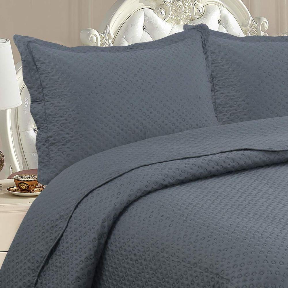 Kit Cobre Leito Queen Classic Liso Ultrasonic + 2 Porta-travesseiros Poa Chumbo