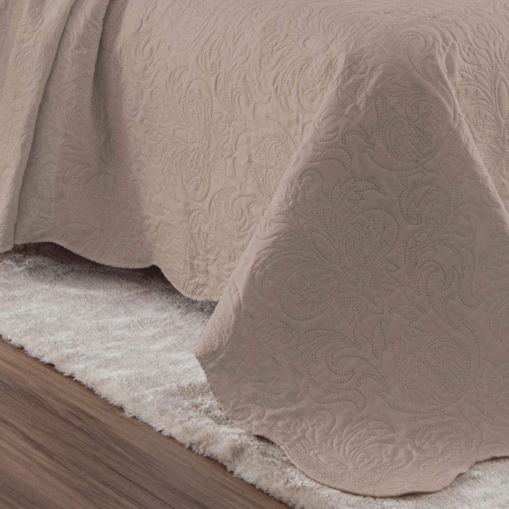 Kit Cobre Leito Casal Classic Liso Ultrasonic + 2 Porta-travesseiros Floral BegeCobre-Leito CasalEstá em busca de uma cama moderna, versátil e elegante, que dê um toque a mais na decoração de todo seu quarto?Se sim, o Kit Colcha Cobreleito Classic é a escolha perfeita para você. A colcha Classic é feita em microfibra de alta qualidade e possui um acabamento em matelassê ultrassônico, em que não é necessário costura e o matelassê é feito com uma tecnologia diferenciada através de calor. O matelassado ultrassônico faz com que seja impossível descosturar o matelassê e deixa sua cama com um ar super moderno.A linha de Cobreleitos Classic é perfeita para o clima tropical do Brasil, pois o cobreleito é um edredom matelassado que proporciona proteção contra o frio e uma temperatura agradável para um sono de qualidade, sem esquentar demais durante a noite.Cama PostaQuando se pensa em cama posta, se pensa naquelas camas lindas e super caprichadas feitas por blogueiras e influencers. E se tem um item que é fundamental para montar uma cama posta bonita e diferenciada é o Kit Cobreleito.O Kit Cobreleito é oque vai guiar a decoração e escolha de todos os outros itens que vão compor sua cama, como mantas, peseiras, almofadas, entre outros, pois ele é a base e referência para toda a decoração da cama. O Kit Colcha Cobreleito permite o uso de inúmeros produtos e várias montagens de cama, complementando toda a decoração do quarto e deixando o ambiente com uma pegada moderna e elegante.O que é um Cobre-Leito?Cobre-leito é um edredom matelassado, com um enchimento bem menos espesso do que um edredom, sendo perfeito para o nosso clima tropical, proporcionando conforto e proteção contra o frio em suas noites de sono. Além disso, ele é uma excelente proteção contra o acúmulo de poeira e ácaro no seu colchão e travesseiros, pois deixa tudo bem protegido ao longo do dia.Características:Tamanho: CasalComposição:- Tecido externo: 100% Poliéster- Enchimento: 100% PoliésterContém:- 1 Colcha: 2,20m x 2,40m- 2 Porta Travesseiros: 50cm x 70cmInstruções de Conservação:* Temperatura máxima 40° C.* Não usar alvejante a base de cloro.* É permitida a secagem em máquina de secar na temperatura mínima.* Não passar a ferro.* Não é permitida a lavagem a seco.