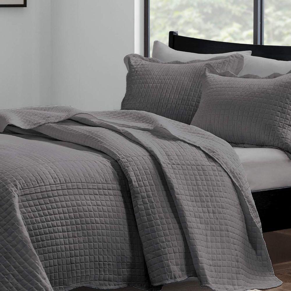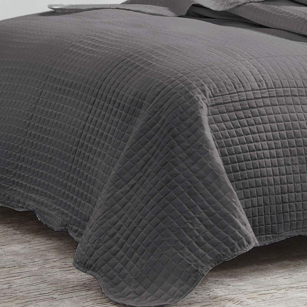 Kit Cobre Leito Casal Milão Liso + 2 Porta Travesseiros Geometrico Chumbo