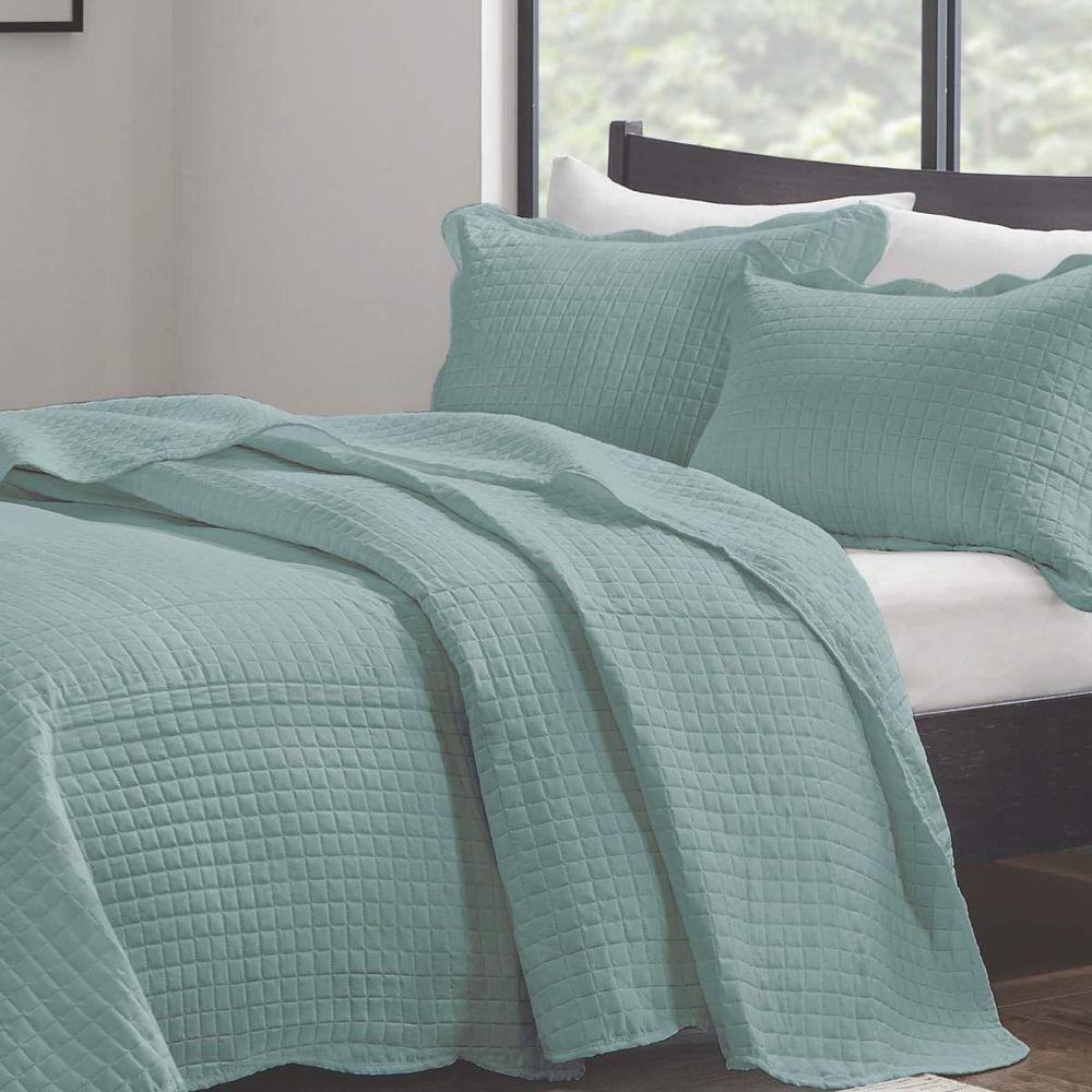 Kit Cobre Leito Queen Milão Liso + 2 Porta Travesseiros Geometrico Verde Acqua