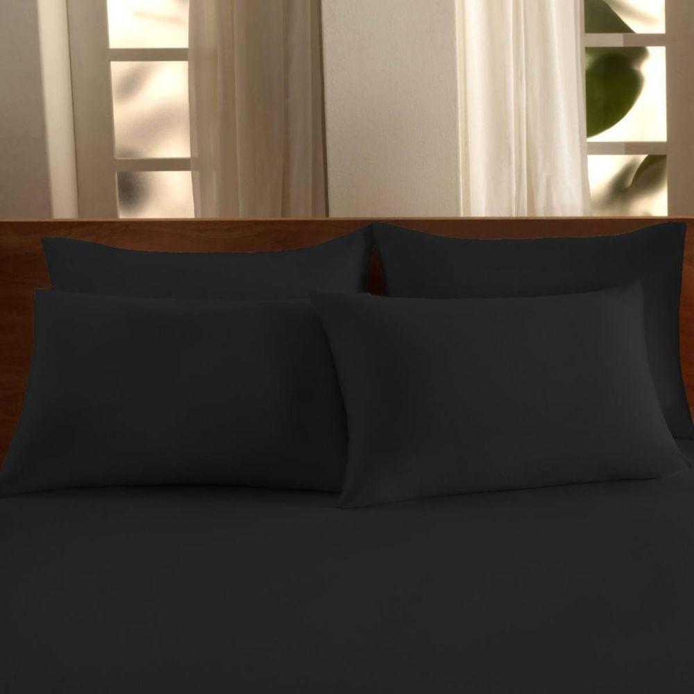 Jogo De Cama Malha Queen Liso Vivaldi 100% Algodão 03 Peças Preto