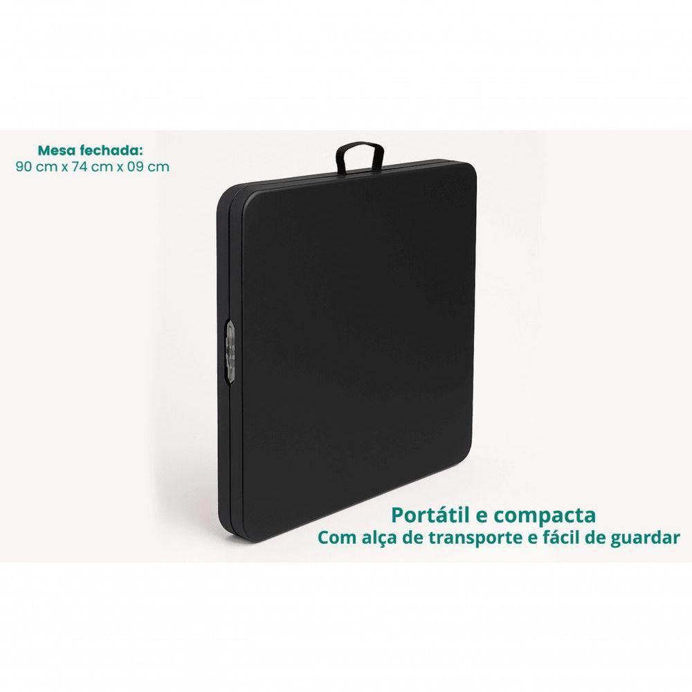 Mesa Dobrável Vira Maleta Com Alça Portátil 1,80m Camping Preta