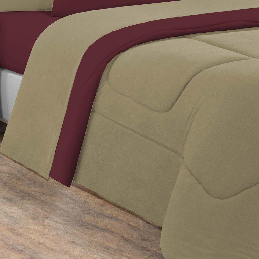 Kit Edredom + Jogo De Lençol 100% Algodão Gran Moratta 7 Peças Casal Avelã-vinho