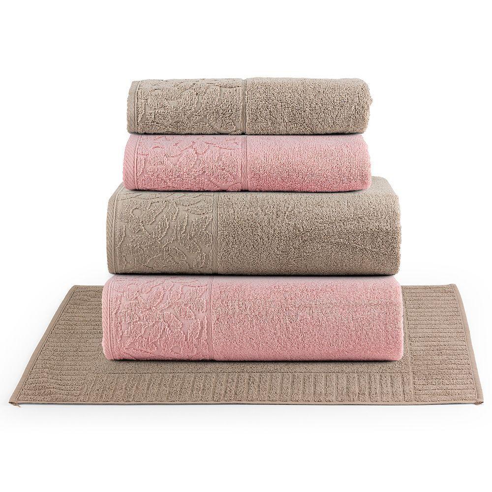 Jogo De Banho Blume Fio Penteado Jacquard 05 Peças 100% Algodão - Nuvem Rosa/amêndoa/amêndoa