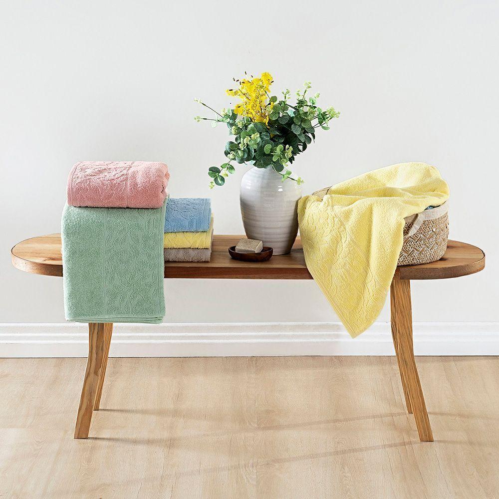 Jogo De Banho Blume Fio Penteado Jacquard 05 Peças 100% Algodão - Nuvem Rosa/amêndoa/amêndoaJogo de Banho Blume: Leveza e beleza em cada detalhe.Inspirada na delicadeza das flores, a Toalha de Banho Blume transforma o banho em um momento de bem-estar e aconchego.Confeccionada em 100% algodão fio penteado, oferece toque macio, excelente absorção e durabilidade, garantindo conforto em cada uso.O barrado floral de 14 cm acrescenta um toque de charme e sofisticação, valorizando o visual do banheiro e harmonizando facilmente com diferentes estilos de decoração.Jogo de Banho (05 Peças):02 Toalhas de Banho Blume: 1,50m x 75cm02 Toalhas de Rosto Blume: 80cm x 50cm01 Toalha de Piso Slim: 75cm x 50cmComposição:Tecido: 100% AlgodãoGramatura Toalhas de Banho e Toalhas de Rosto: 420g/m²Gramatura Toalha de Piso: 600g/m²Peso Aproximado Toalhas de Banho: 470 gramasPeso Aproximado Toalhas de Rosto: 176 gramasPeso Aproximado Toalha de Piso: 230 gramasCaracterísticas do Produto:- Fio penteado: mais maciez, resistência e conforto ao toque.- Desenho em jacquard: folhas que criam uma textura sofisticada.- Várias composições de jogos 5 peças, com cores pensadas para harmonizar com diferentes estilos de banheiro.Benefícios:- Toque macio e ótima absorção para o uso diário.- Estilo e elegância com o desenho em folhas.- Ideal para quem valoriza peças que unem funcionalidade e beleza.-Você sabe o que é fio penteado?O fio penteado é feito a partir do algodão que passa por um processo especial, onde as fibras curtas e impurezas são retiradas. Com isso, ficam apenas as fibras mais longas e alinhadas, o que torna o tecido:- Mais resistente e durável.- Mais macio e agradável ao toque.- Com acabamento mais uniforme e bonito.Por isso, as toalhas feitas com fio penteado oferecem mais conforto e qualidade, além de manterem a aparência por muito mais tempo.Atenção: As cores do produto podem apresentar pequenas variações de acordo com as configurações da tela do seu dispositivo.
