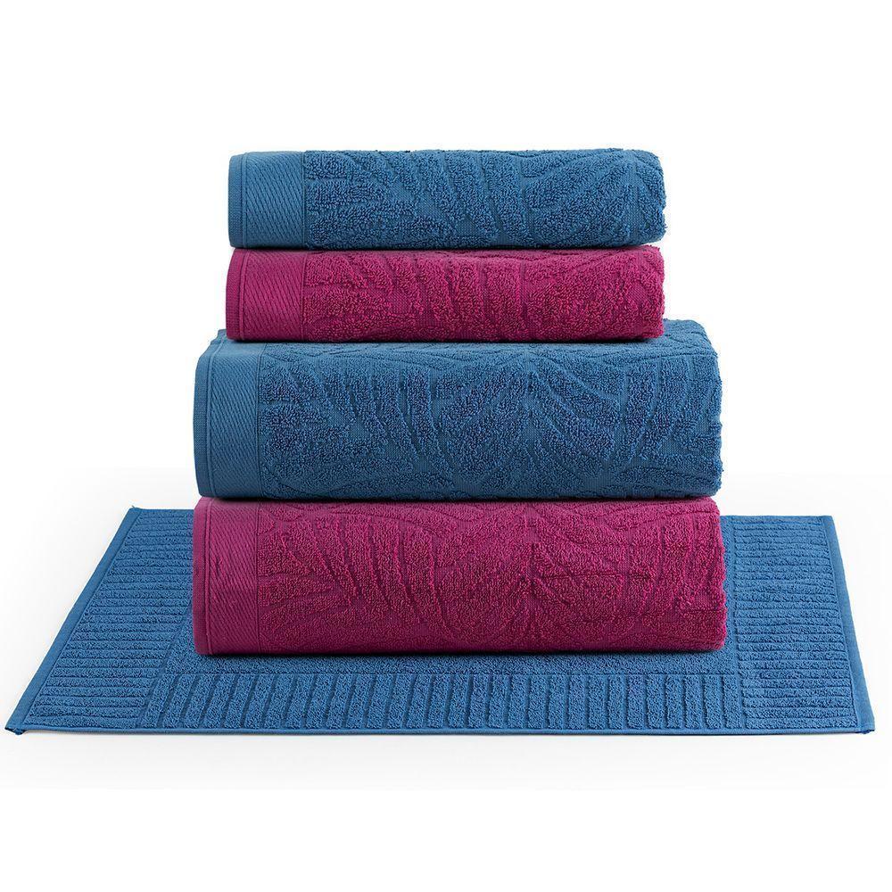 Jogo De Banho Native Fio Penteado Jacquard Folhas 05 Peças 100% Algodão - Pitaya/maré/maré