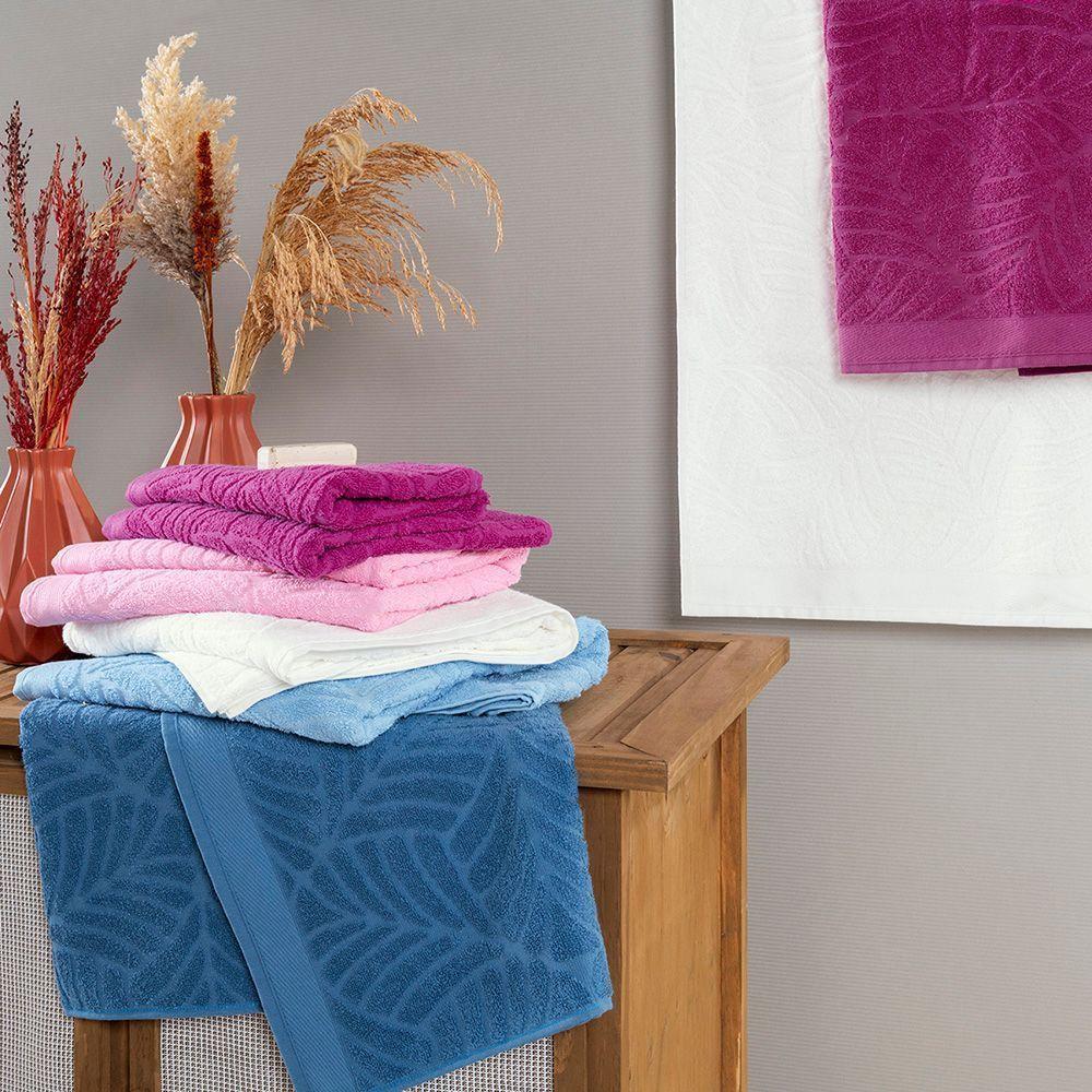 Jogo De Banho Native Fio Penteado Jacquard Folhas 05 Peças 100% Algodão - Pitaya/maré/maréJogo de Banho Native: Inspirado na beleza natural.A vida pode ser corrida, mas o banho continua sendo um momento só seu, de pausa e reconexão. É nesse instante que o Jogo de Banho Native se destaca, trazendo a essência da natureza para o seu ritual de cuidado.Inspirado na Costela de Adão, planta tropical de folhas exuberantes e cheias de personalidade, o conjunto apresenta um lindo trabalho em jacquard com desenho em formato de folhas, adicionando textura, frescor e charme à decoração do banheiro.Confeccionado em 100% algodão fio penteado, o jogo oferece toque macio, alta absorção e durabilidade superior, combinando beleza e funcionalidade para o dia a dia.Disponível em cores que remetem à natureza, o Jogo de Banho Native 5 peças é a escolha ideal para quem busca conforto e estilo em cada detalhe.Jogo de Banho (05 Peças): 02 Toalhas de Banho Native: 1,50m x 75cm 02 Toalhas de Rosto Native: 80cm x 50cm 01 Toalha de Piso Slim: 75cm x 50cmComposição:Tecido: 100% AlgodãoGramatura Toalhas de Banho e Toalhas de Rosto: 420g/m²Gramatura Toalha de Piso: 600g/m²Peso Aproximado Toalhas de Banho: 470 gramasPeso Aproximado Toalhas de Rosto: 180 gramasPeso Aproximado Toalha de Piso: 230 gramasCaracterísticas do Produto:- Fio penteado: mais maciez, resistência e conforto ao toque.- Desenho em jacquard: folhas que criam uma textura sofisticada.- Várias composições de jogos 5 peças, com cores pensadas para harmonizar com diferentes estilos de banheiro.Benefícios:- Toque macio e ótima absorção para o dia a dia.- Estilo e elegância com o desenho em folhas.- Ideal para quem valoriza peças que unem funcionalidade e beleza.-Você sabe o que é fio penteado?O fio penteado é feito a partir do algodão que passa por um processo especial, onde as fibras curtas e impurezas são retiradas. Com isso, ficam apenas as fibras mais longas e alinhadas, o que torna o tecido:- Mais resistente e durável.- Mais macio e agradável ao toque.- Com acabamento mais uniforme e bonito.Por isso, as toalhas feitas com fio penteado oferecem mais conforto e qualidade, além de manterem a aparência por muito mais tempo.Atenção: As cores do produto podem apresentar pequenas variações de acordo com as configurações da tela do seu dispositivo.