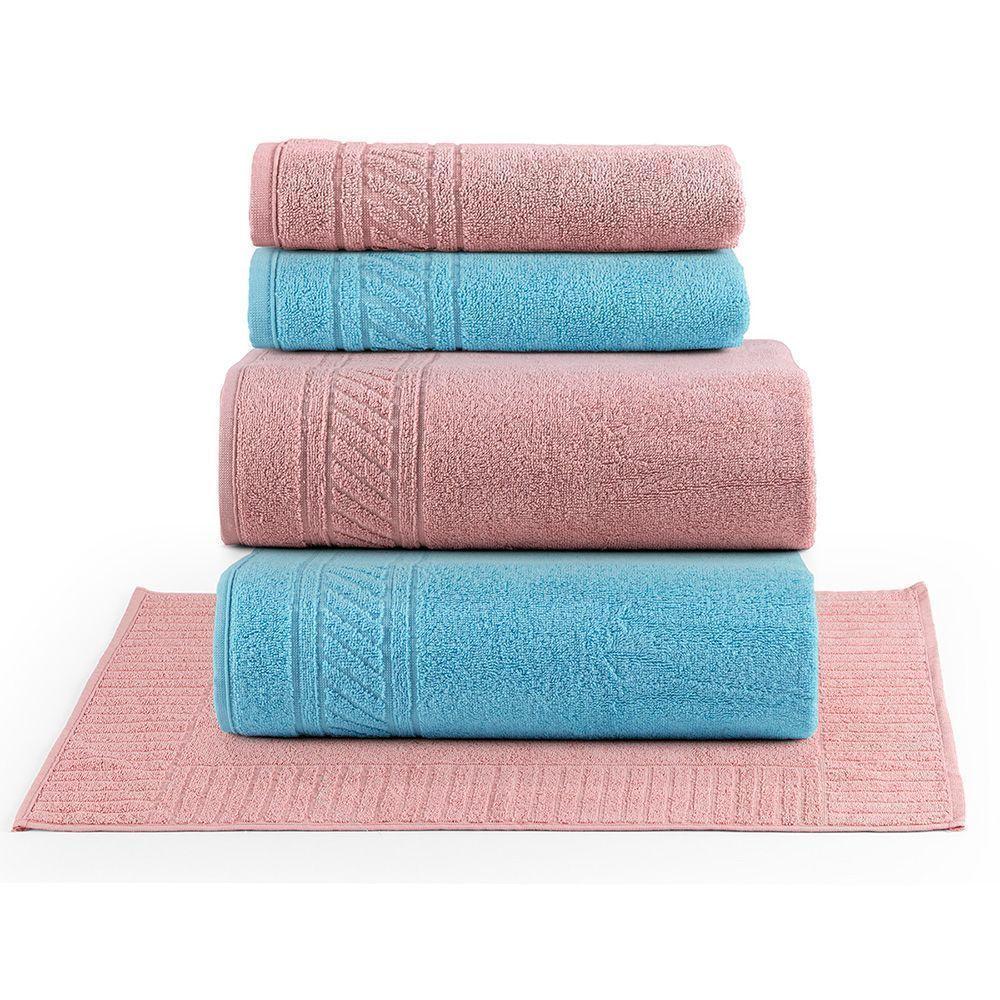 Jogo De Banho Lummi Fio Penteado Relevo Listras 05 Peças 100% Algodão - Nuvem Rosa/cristal/nuvem Rosa