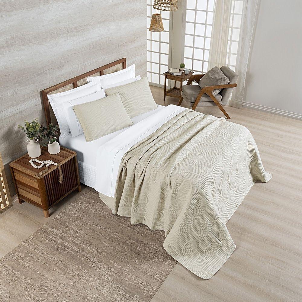 Cobre Leito Arcos 200 Fios Queen 03 Peças 100% Poliéster - BaunilhaCobre Leito Arcos 200 Fios Queen 03 Peças 100% PoliésterPerfeito para compor a cama com leveza e harmonia , o Cobre Leito Arcos se destaca pelo seu design moderno e tons neutros que se adaptam a qualquer estilo de decoração.Por que o Cobre Leito Arcos é a escolha ideal?Toque Super Macio: Sinta o conforto do toque Super Soft em um tecido Micropercal 200 Fios, que garante uma experiência de aconchego e suavidade.Design Moderno em Relevo: O acabamento com matelado ultrassônico em formato de arco cria uma textura sofisticada e contemporânea, adicionando um charme discreto e elegante à peça.Cama Completa e Harmoniosa: O conjunto inclui dois porta travesseiros no mesmo design do cobre leito, garantindo uma composição visualmente equilibrada e pronta para decorar.Praticidade e Qualidade: Além de lindo, o tecido 100% poliéster é fácil de cuidar, resistente e mantém a aparência de novo por mais tempo, unindo beleza e funcionalidade.Produto composto por:01 Cobre Leito Queen 2,60m x 2,40m02 Porta Travesseiros 70cm x 50cmComposição:Tecido Superior e Inferior: Micropercal 200 Fios 100% PoliésterEnchimento: 100% PoliésterAtenção: As cores do produto podem apresentar pequenas variações de acordo com as configurações da tela do seu dispositivo.