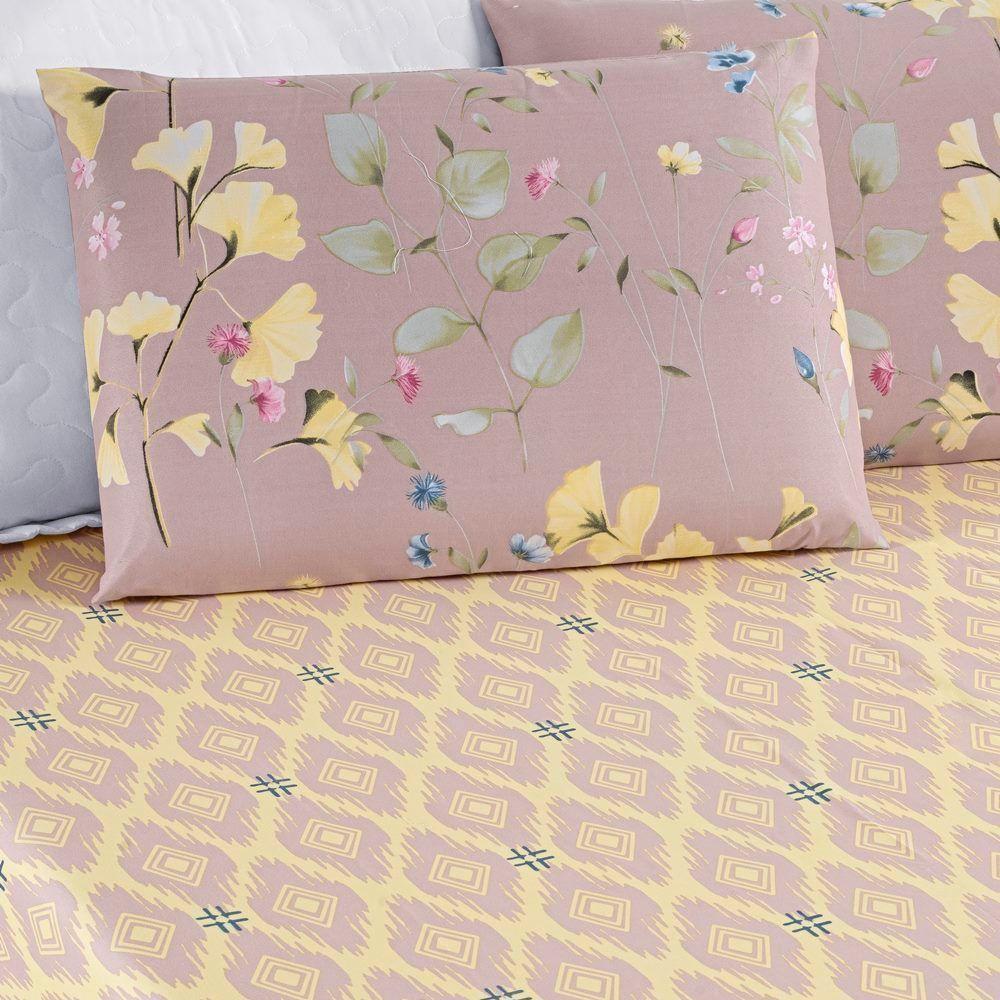 Colcha + Jogo De Cama Bouti Estampado King 06 Peças 100% Poliéster - LavandaTraga um charme e harmonia sem igual para sua cama King com o Kit Coordenado Bouti Estampado King 06 Peças. Este conjunto une a Colcha Dupla Face com a praticidade do Jogo de Cama essencial de 3 peças, ambos com belas estampas que enchem o quarto de delicadeza.Confeccionado em tecido microfibra 100% Poliéster, o kit oferece um toque macio, tons vivos e alegres, além de ser uma peça leve e prática para o seu dia a dia.Por que o Kit Bouti é uma ótima escolha?Visual Coordenado: A colcha e o jogo de cama possuem estampas que se harmonizam, criando um ambiente charmoso e cheio de vida.Kit Essencial e Prático (6 Peças): Este conjunto é focado na praticidade, fornecendo a colcha, o lençol de baixo com elástico e as peças de travesseiro.Composição Dupla para Travesseiros: O kit deixa a cama cheia e elegante, pois inclui 04 peças para travesseiro: 02 Porta Travesseiros estampados (da colcha) e 02 Fronhas estampadas (do jogo de cama).Praticidade do Poliéster: O tecido 100% Poliéster é resistente, fácil de lavar e tem secagem rápida.Ajuste Perfeito: O lençol de baixo possui elástico em toda a volta para um ajuste ideal em colchões King de até 30cm de altura.Produto composto por (Total 06 Peças):Da Colcha (03 Peças):01 Colcha Dupla Face 2,80m x 2,60m02 Porta travesseiros 70cm x 50cmDo Jogo de Cama (03 Peças):01 Lençol de Baixo com elástico (para colchão de 2,03m x 1,93m x 30cm alt.)02 Fronhas 70cm x 50cmAtenção: Este kit é composto pelo jogo de cama essencial (3 peças) e não inclui o lençol de cima (sobre lençol).Composição:Tecido (Todas as 6 peças):100% PoliésterCuidados:Lavável em casa (processo normal, temperatura máxima de 40°C).Não usar alvejante.Não é permitido secagem na máquina.Não passar a ferro.Secar à sombra, em superfície plana.