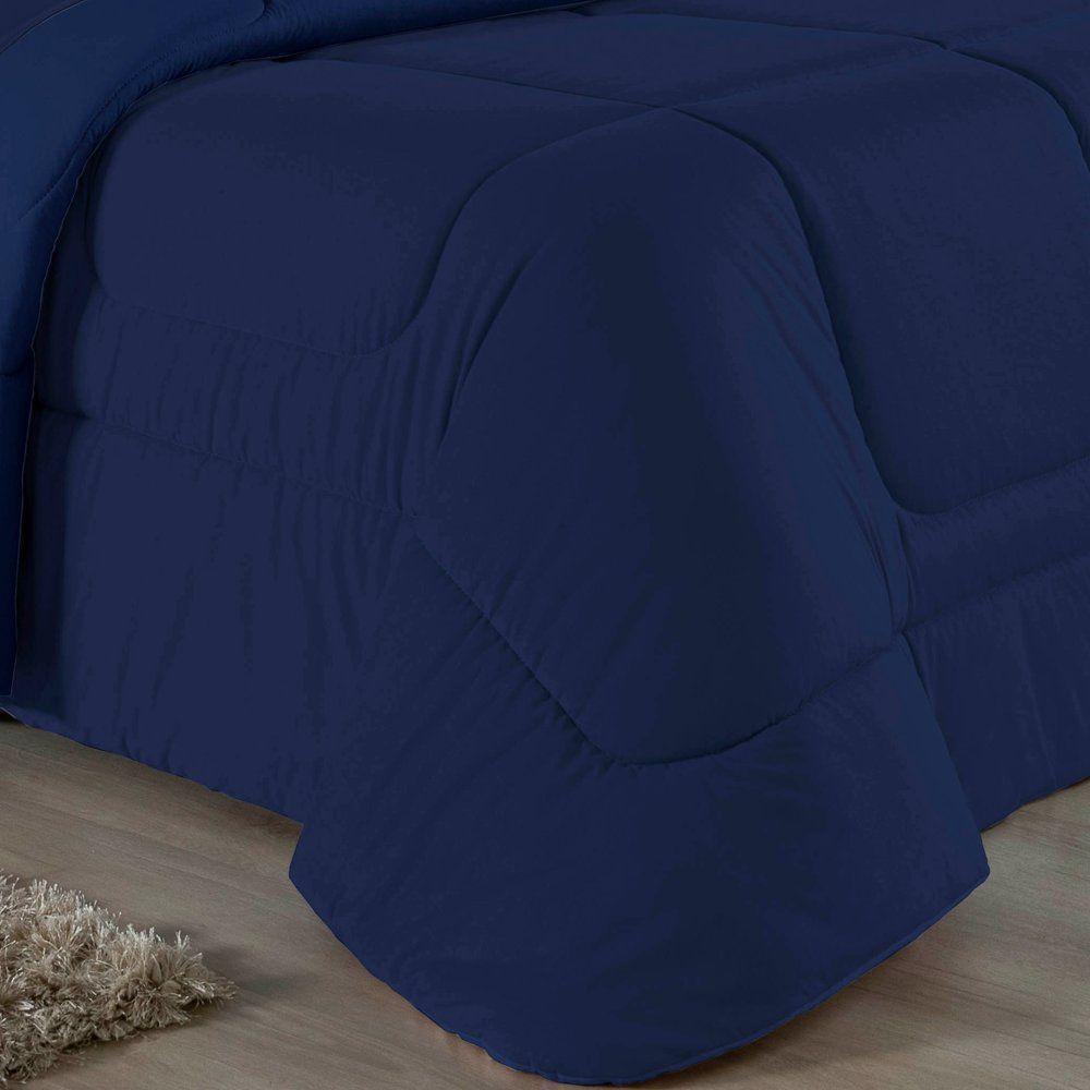 Edredom Solteiro Nobre 1 Peça Dupla Face 1,60m X 2,40m Malha 100% Algodão - Azul-marinho