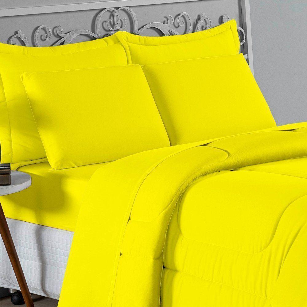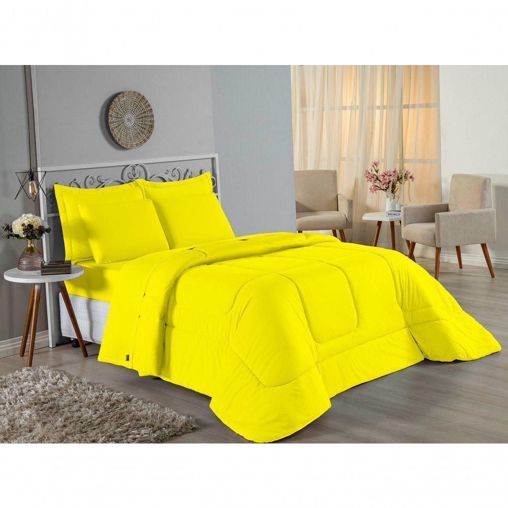 Edredom Solteiro Nobre 1 Peça Dupla Face 1,60m X 2,40m Malha 100% Algodão - Amarelo