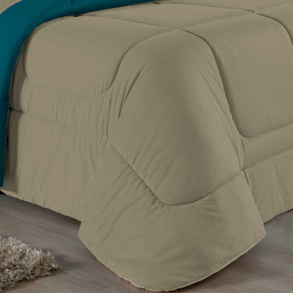 Edredom Solteiro Nobre 1 Peça Dupla Face 1,60m X 2,40m Malha 100% Algodão - Avelã / Petróleo