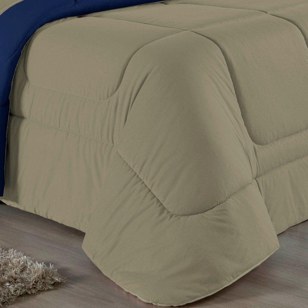 Edredom Solteiro Nobre 1 Peça Dupla Face 1,60m X 2,40m Malha 100% Algodão - Avelã / Azul-marinho