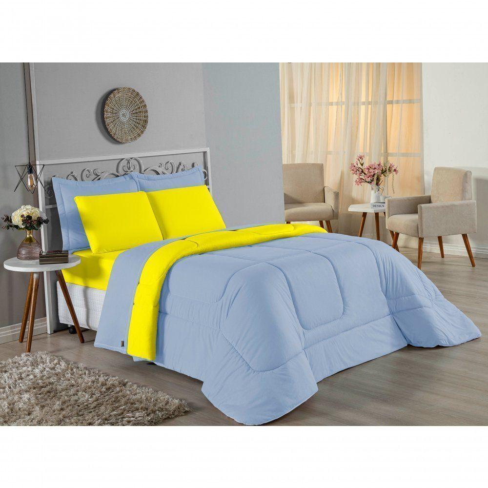 Edredom Solteiro Nobre 1 Peça Dupla Face 1,60m X 2,40m Malha 100% Algodão - Azul-bebê / AmareloTransforme suas noites de sono com o conforto supremo do Edredom Solteiro Nobre. A escolha ideal para quem não abre mão da maciez extrema e de um visual clean e moderno para o quarto.Por que o Edredom Nobre é a escolha perfeita?- Toque Extremamente Macio: Confeccionado em Malha 100% Algodão com Fio 30/1 Penteado, este edredom oferece uma sensação suave na pele, garantindo um descanso muito mais acolhedor.- Versatilidade Dupla Face: O modelo é dupla face e liso, permitindo variar a decoração da cama com facilidade e praticidade.- Aconchego na Medida Certa: Seu enchimento em fibra siliconada proporciona o volume e o aquecimento ideais para noites agradáveis.- Alta Qualidade: O fio penteado passa por um processo que retira as fibras mais curtas e impurezas, resultando em um tecido mais resistente e que não forma bolinhas com facilidade.Produto composto por (Total 01 Peça):01 Edredom Solteiro Dupla Face 1,60m x 2,40mComposição:Tecido: Malha 100% Algodão - Fio 30/1 PenteadoEnchimento: 100% Poliéster Siliconada