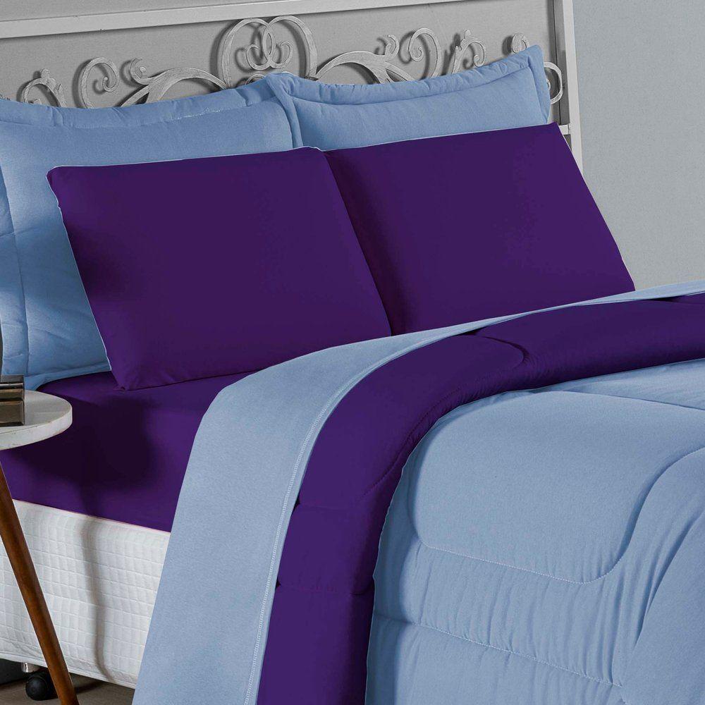 Edredom Solteiro Nobre 1 Peça Dupla Face 1,60m X 2,40m Malha 100% Algodão - Azul-bebê / RoxoTransforme suas noites de sono com o conforto supremo do Edredom Solteiro Nobre. A escolha ideal para quem não abre mão da maciez extrema e de um visual clean e moderno para o quarto.Por que o Edredom Nobre é a escolha perfeita?- Toque Extremamente Macio: Confeccionado em Malha 100% Algodão com Fio 30/1 Penteado, este edredom oferece uma sensação suave na pele, garantindo um descanso muito mais acolhedor.- Versatilidade Dupla Face: O modelo é dupla face e liso, permitindo variar a decoração da cama com facilidade e praticidade.- Aconchego na Medida Certa: Seu enchimento em fibra siliconada proporciona o volume e o aquecimento ideais para noites agradáveis.- Alta Qualidade: O fio penteado passa por um processo que retira as fibras mais curtas e impurezas, resultando em um tecido mais resistente e que não forma bolinhas com facilidade.Produto composto por (Total 01 Peça):01 Edredom Solteiro Dupla Face 1,60m x 2,40mComposição:Tecido: Malha 100% Algodão - Fio 30/1 PenteadoEnchimento: 100% Poliéster Siliconada