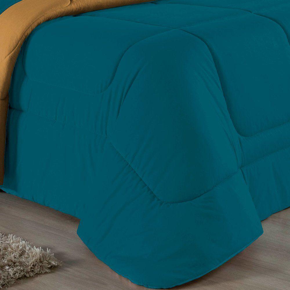 Edredom Solteiro Nobre 1 Peça Dupla Face 1,60m X 2,40m Malha 100% Algodão - Petróleo / Cobre