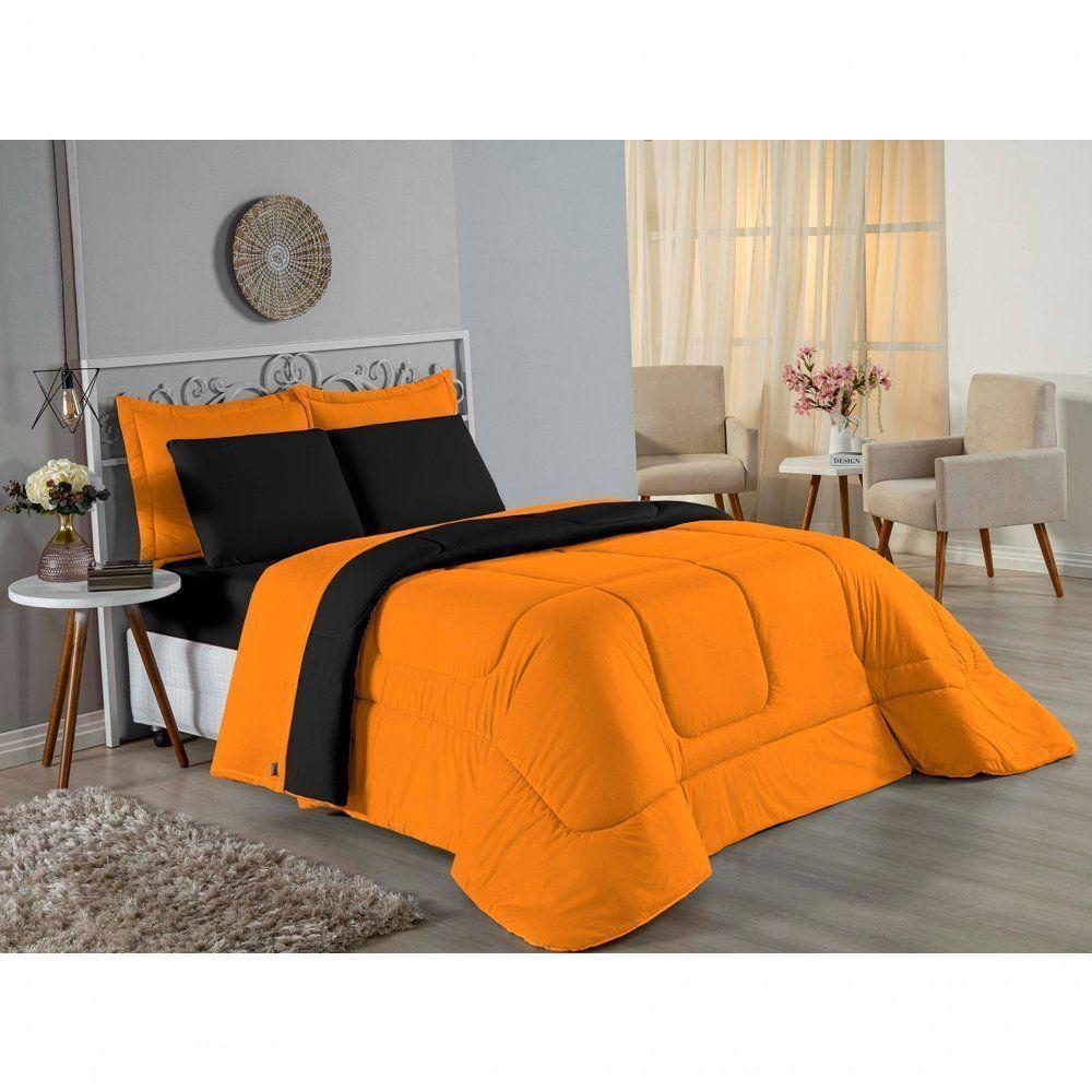 Edredom Solteiro Nobre 1 Peça Dupla Face 1,60m X 2,40m Malha 100% Algodão - Laranja / Preto