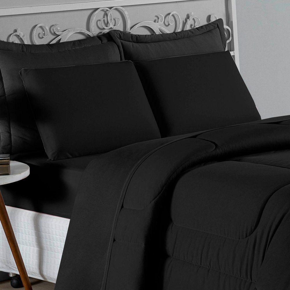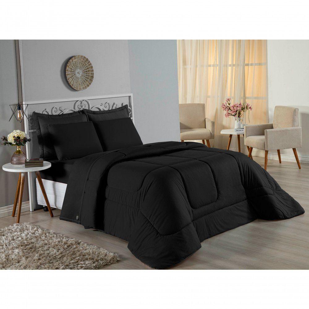 Edredom Solteiro Nobre 1 Peça Dupla Face 1,60m X 2,40m Malha 100% Algodão - Preto