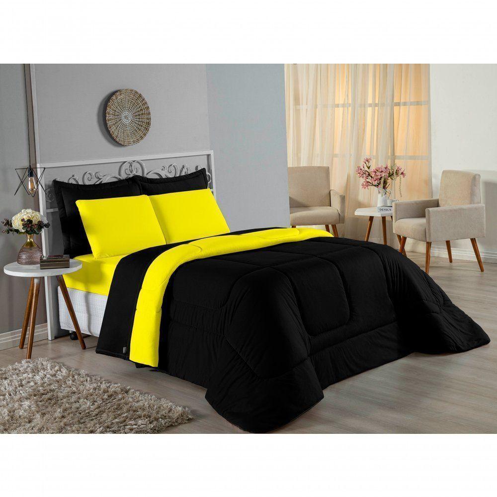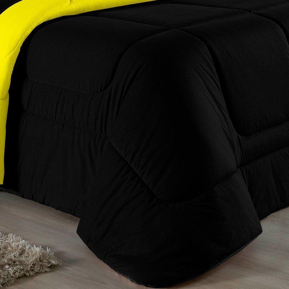 Edredom Solteiro Nobre 1 Peça Dupla Face 1,60m X 2,40m Malha 100% Algodão - Preto / Amarelo