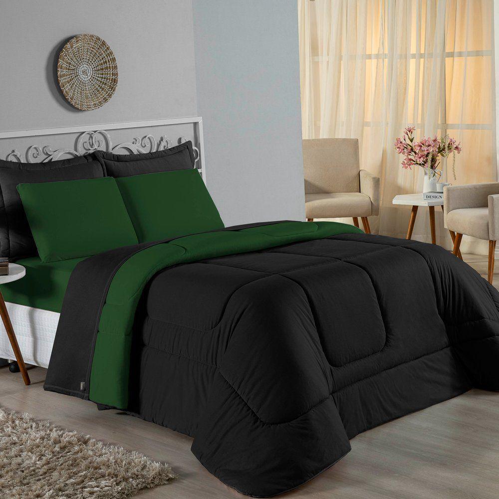 Edredom Solteiro Nobre 1 Peça Dupla Face 1,60m X 2,40m Malha 100% Algodão - Preto / Verde-bandeiraTransforme suas noites de sono com o conforto supremo do Edredom Solteiro Nobre. A escolha ideal para quem não abre mão da maciez extrema e de um visual clean e moderno para o quarto.Por que o Edredom Nobre é a escolha perfeita?- Toque Extremamente Macio: Confeccionado em Malha 100% Algodão com Fio 30/1 Penteado, este edredom oferece uma sensação suave na pele, garantindo um descanso muito mais acolhedor.- Versatilidade Dupla Face: O modelo é dupla face e liso, permitindo variar a decoração da cama com facilidade e praticidade.- Aconchego na Medida Certa: Seu enchimento em fibra siliconada proporciona o volume e o aquecimento ideais para noites agradáveis.- Alta Qualidade: O fio penteado passa por um processo que retira as fibras mais curtas e impurezas, resultando em um tecido mais resistente e que não forma bolinhas com facilidade.Produto composto por (Total 01 Peça):01 Edredom Solteiro Dupla Face 1,60m x 2,40mComposição:Tecido: Malha 100% Algodão - Fio 30/1 PenteadoEnchimento: 100% Poliéster Siliconada