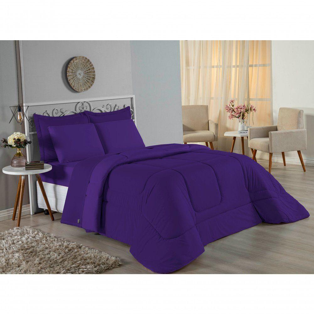 Edredom Solteiro Nobre 1 Peça Dupla Face 1,60m X 2,40m Malha 100% Algodão - Roxo