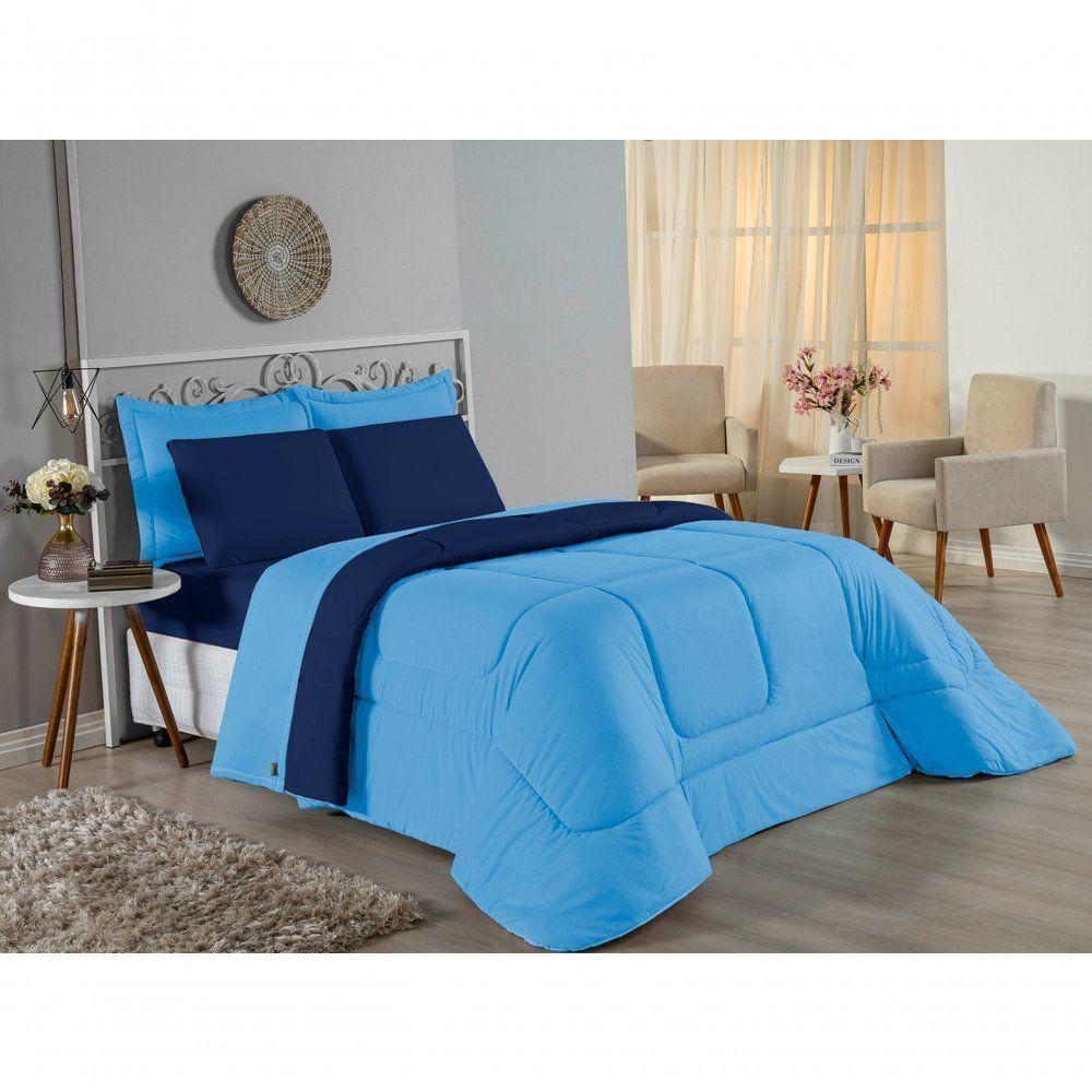 Edredom Solteiro Nobre 1 Peça Dupla Face 1,60m X 2,40m Malha 100% Algodão - Turquesa / Azul-marinhoTransforme suas noites de sono com o conforto supremo do Edredom Solteiro Nobre. A escolha ideal para quem não abre mão da maciez extrema e de um visual clean e moderno para o quarto.Por que o Edredom Nobre é a escolha perfeita?- Toque Extremamente Macio: Confeccionado em Malha 100% Algodão com Fio 30/1 Penteado, este edredom oferece uma sensação suave na pele, garantindo um descanso muito mais acolhedor.- Versatilidade Dupla Face: O modelo é dupla face e liso, permitindo variar a decoração da cama com facilidade e praticidade.- Aconchego na Medida Certa: Seu enchimento em fibra siliconada proporciona o volume e o aquecimento ideais para noites agradáveis.- Alta Qualidade: O fio penteado passa por um processo que retira as fibras mais curtas e impurezas, resultando em um tecido mais resistente e que não forma bolinhas com facilidade.Produto composto por (Total 01 Peça):01 Edredom Solteiro Dupla Face 1,60m x 2,40mComposição:Tecido: Malha 100% Algodão - Fio 30/1 PenteadoEnchimento: 100% Poliéster Siliconada