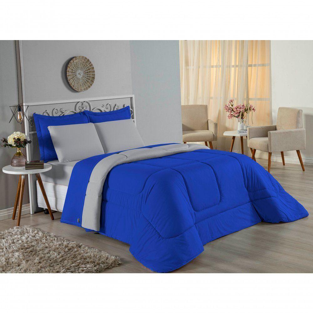 Edredom Solteiro Nobre 1 Peça Dupla Face 1,60m X 2,40m Malha 100% Algodão - Royal / Cinza