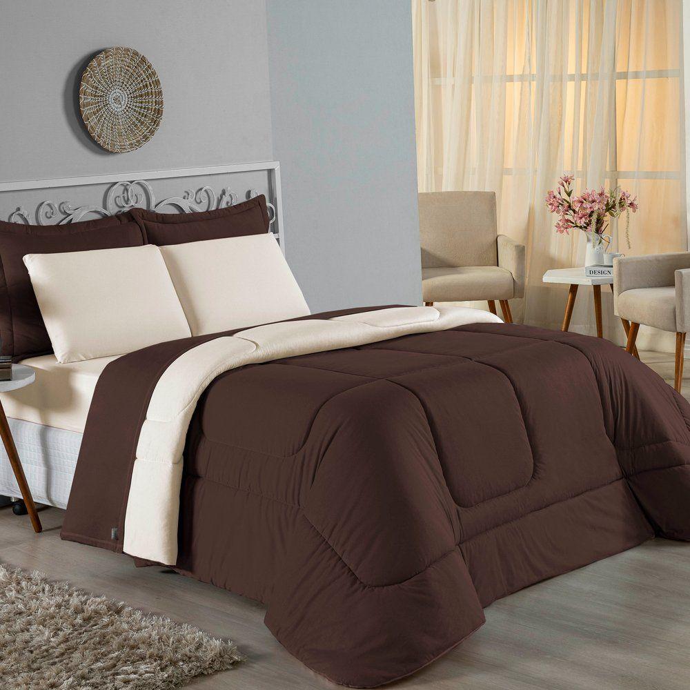 Edredom Solteiro Nobre 1 Peça Dupla Face 1,60m X 2,40m Malha 100% Algodão - Marrom / Palha