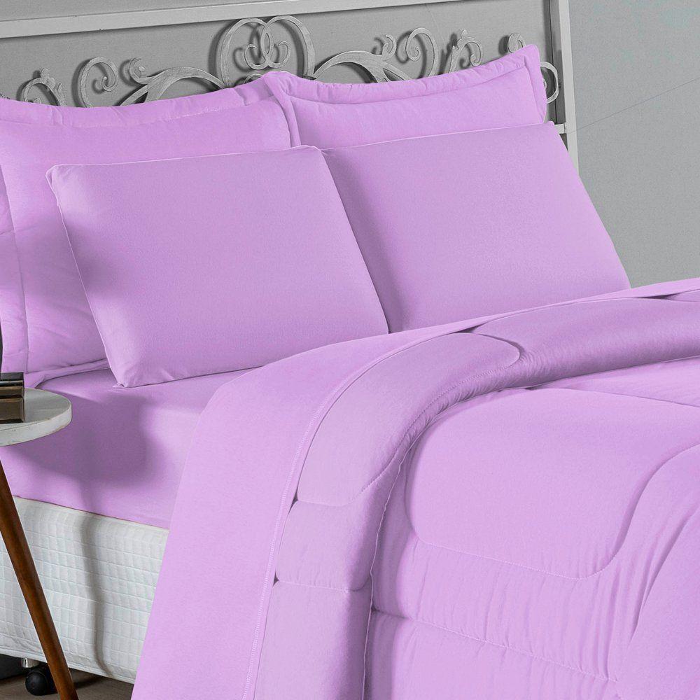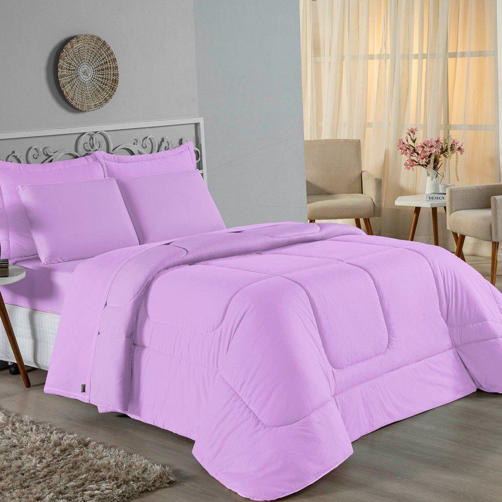 Edredom Solteiro Nobre 1 Peça Dupla Face 1,60m X 2,40m Malha 100% Algodão - Lilás