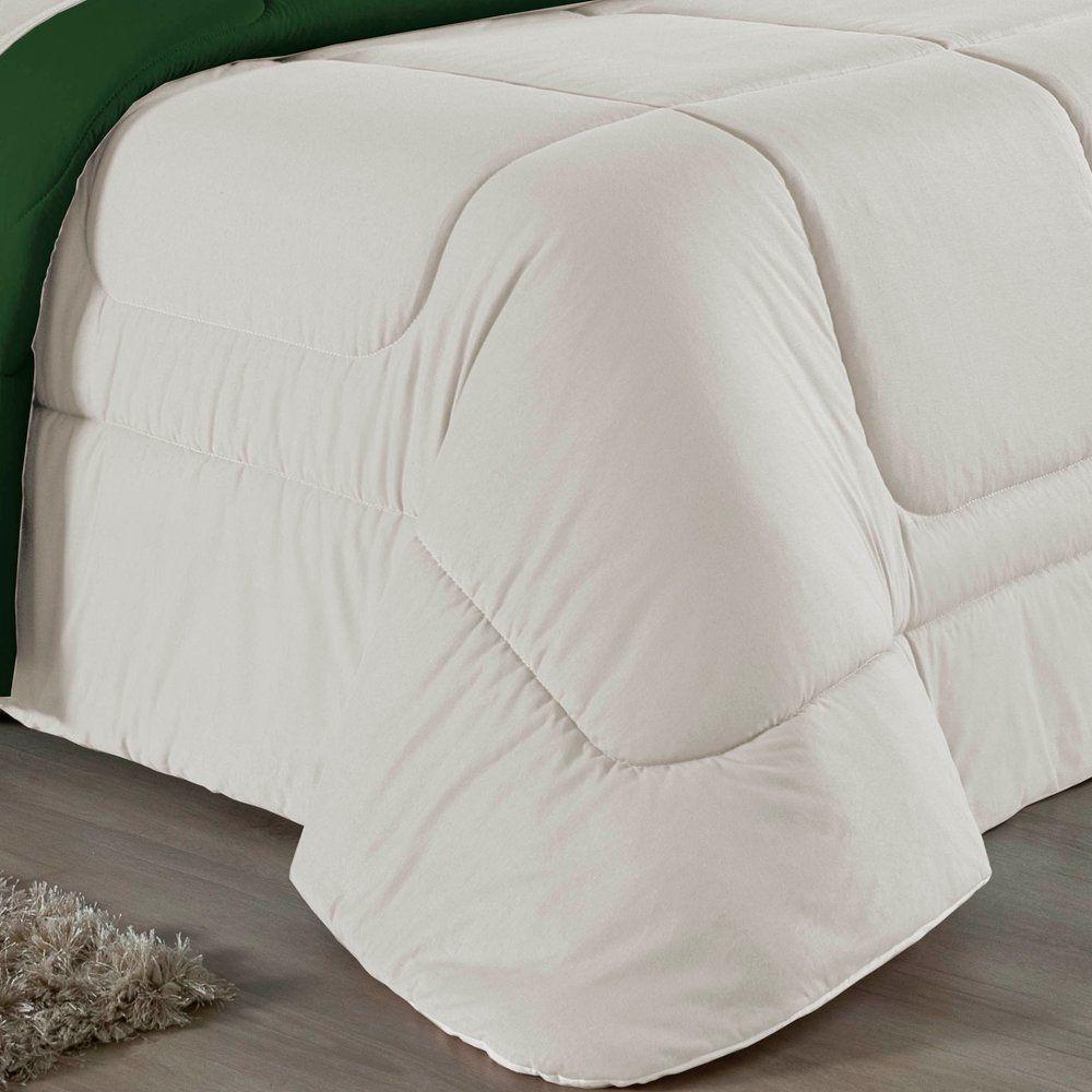 Edredom Solteiro Nobre 1 Peça Dupla Face 1,60m X 2,40m Malha 100% Algodão - Palha / Verde-bandeiraTransforme suas noites de sono com o conforto supremo do Edredom Solteiro Nobre. A escolha ideal para quem não abre mão da maciez extrema e de um visual clean e moderno para o quarto.Por que o Edredom Nobre é a escolha perfeita?- Toque Extremamente Macio: Confeccionado em Malha 100% Algodão com Fio 30/1 Penteado, este edredom oferece uma sensação suave na pele, garantindo um descanso muito mais acolhedor.- Versatilidade Dupla Face: O modelo é dupla face e liso, permitindo variar a decoração da cama com facilidade e praticidade.- Aconchego na Medida Certa: Seu enchimento em fibra siliconada proporciona o volume e o aquecimento ideais para noites agradáveis.- Alta Qualidade: O fio penteado passa por um processo que retira as fibras mais curtas e impurezas, resultando em um tecido mais resistente e que não forma bolinhas com facilidade.Produto composto por (Total 01 Peça):01 Edredom Solteiro Dupla Face 1,60m x 2,40mComposição:Tecido: Malha 100% Algodão - Fio 30/1 PenteadoEnchimento: 100% Poliéster Siliconada