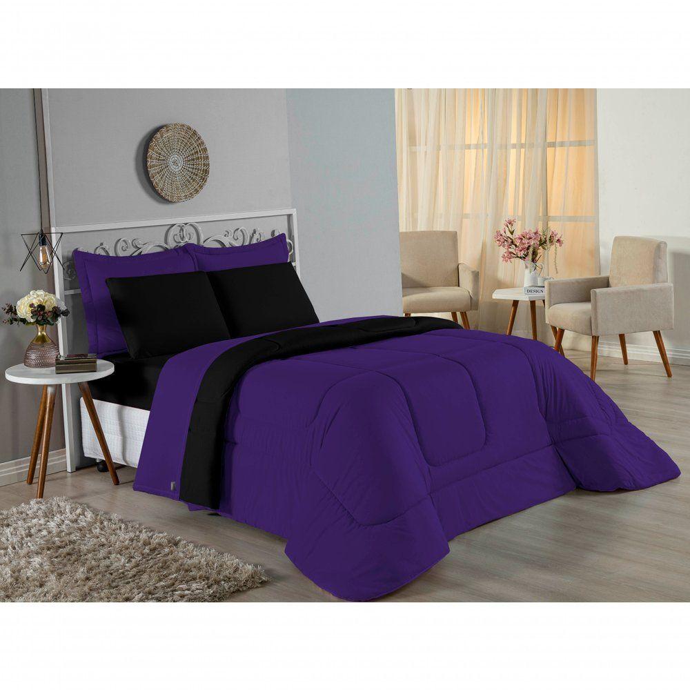 Edredom Solteiro Nobre 1 Peça Dupla Face 1,60m X 2,40m Malha 100% Algodão - Roxo / Preto
