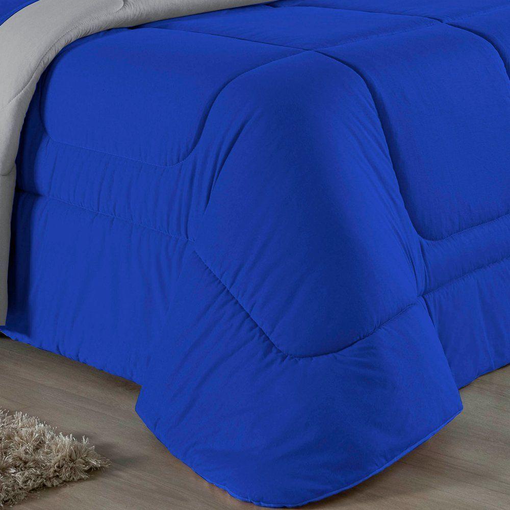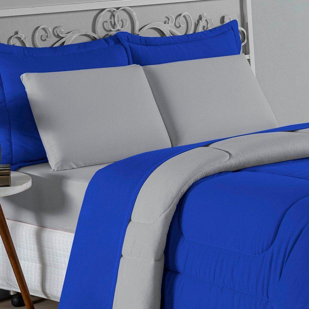 Kit Edredom Dupla Face + Jogo De Lençol Casal Nobre 7 Peças Malha 100% Algodão - Royal / Cinza