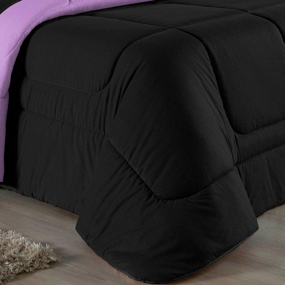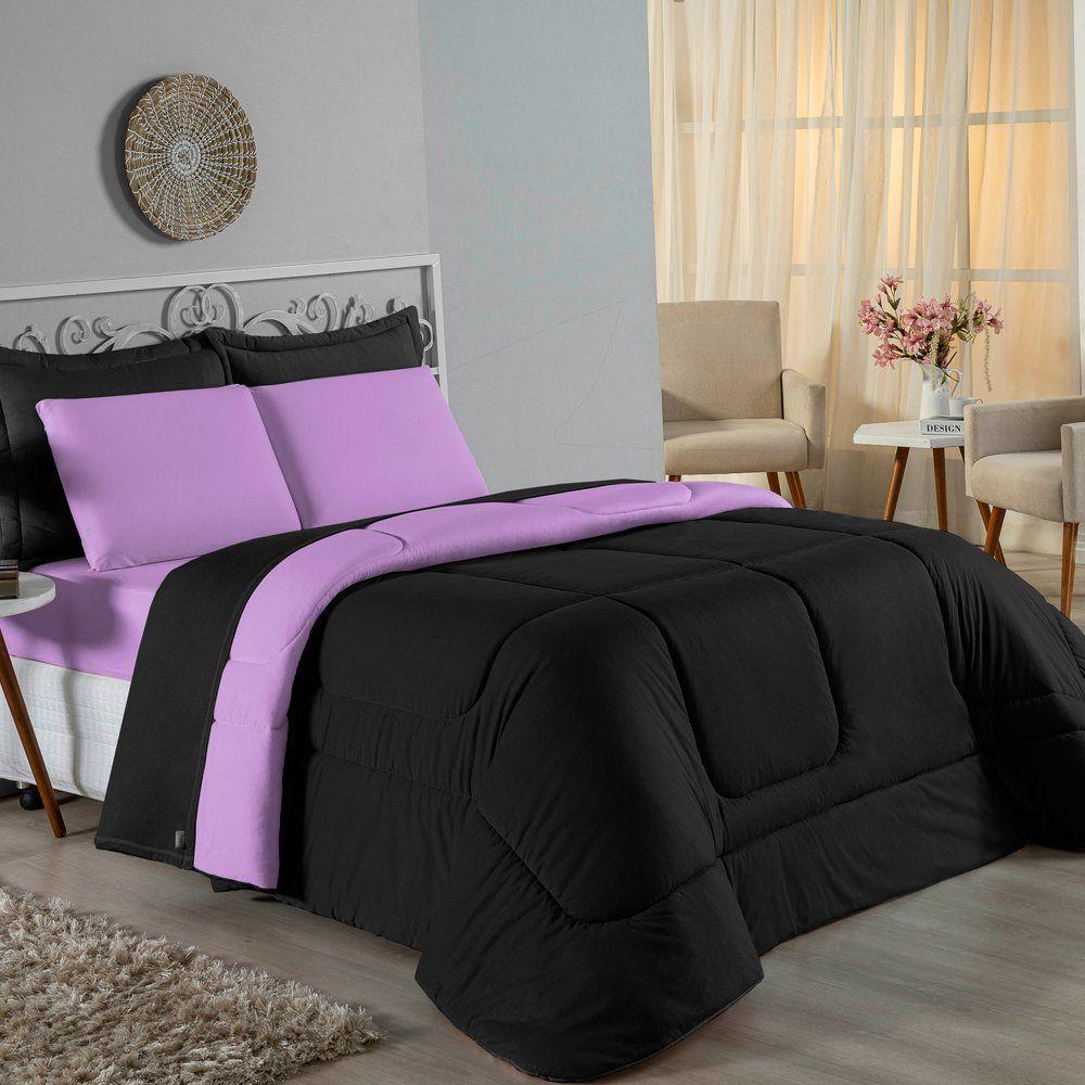 Kit Edredom Dupla Face + Jogo De Lençol Casal Nobre 7 Peças Malha 100% Algodão - Preto / LilásVista sua cama com elegância total e conforto absoluto com o Kit Cama Completa Casal Nobre 7 Peças. A solução definitiva para quem busca um enxoval completo, coordenado e com a maciez irresistível da malha de algodão.Por que este Kit é uma ótima escolha?- Jogo Completo 7 Peças: Inclui edredom, porta travesseiros decorativos e o jogo de cama completo (com lençol de cima e de baixo), oferecendo a experiência completa de conforto.- Malha Premium: Confeccionado em 100% Algodão Fio 30/1 Penteado, garantindo um toque suave, natural e livre de bolinhas.- Versatilidade na Decoração: O edredom dupla face permite variar o visual, enquanto o lençol de cima com vira adiciona charme à cama posta.- Aconchego e Praticidade: Une o aquecimento do edredom à facilidade do lençol com elástico, perfeito para o dia a dia.Produto composto por (Total 07 Peças):Do Kit Edredom (03 Peças):01 Edredom Casal Dupla Face: 2,00m x 2,20m02 Porta Travesseiros Matelados: 50cm x 70cmDo Jogo de Lençol (04 Peças):01 Lençol de Cima (Virol): 2,40m x 2,20m01 Lençol de Baixo com Elástico: 1,38m x 1,98m x 30cm02 Fronhas: 70cm x 50cmComposição:Tecido (Todas as peças): Malha 100% Algodão - Fio 30/1 PenteadoEnchimento (Edredom e Porta Travesseiros): 100% Poliéster (Edredom com fibra siliconada)Forro (Apenas Porta Travesseiros): 100% Polipropileno