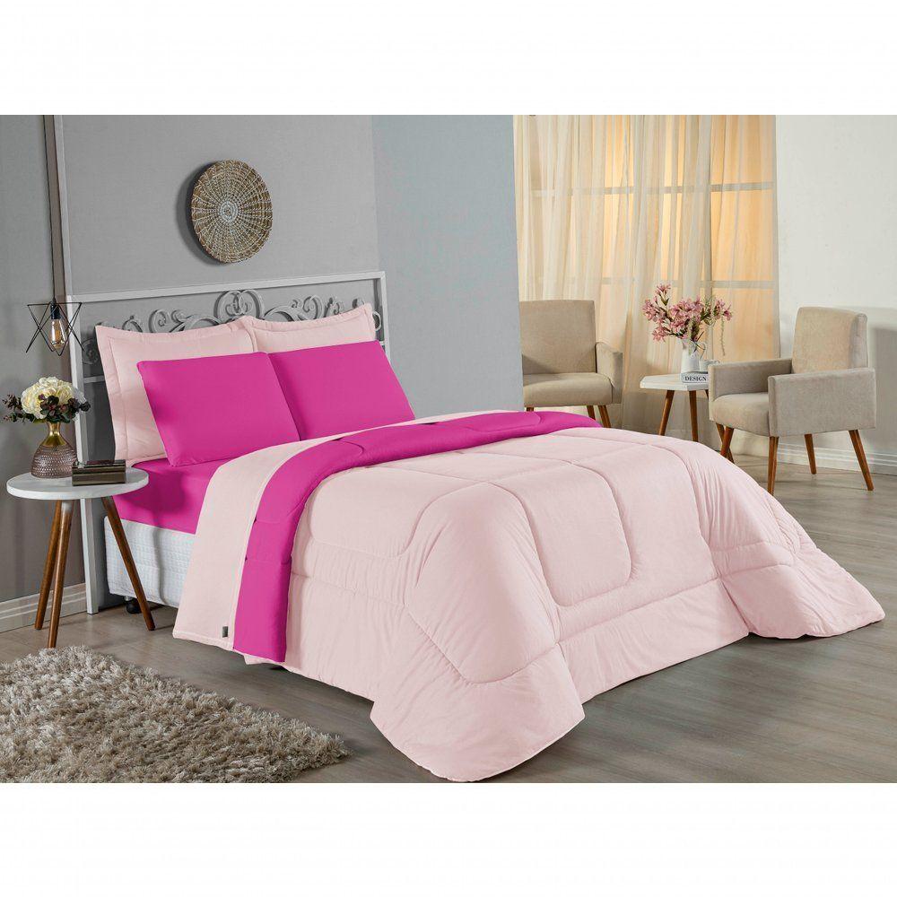 Kit Edredom Dupla Face + Jogo De Lençol Casal Nobre 7 Peças Malha 100% Algodão - Rosa / PinkVista sua cama com elegância total e conforto absoluto com o Kit Cama Completa Casal Nobre 7 Peças. A solução definitiva para quem busca um enxoval completo, coordenado e com a maciez irresistível da malha de algodão.Por que este Kit é uma ótima escolha?- Jogo Completo 7 Peças: Inclui edredom, porta travesseiros decorativos e o jogo de cama completo (com lençol de cima e de baixo), oferecendo a experiência completa de conforto.- Malha Premium: Confeccionado em 100% Algodão Fio 30/1 Penteado, garantindo um toque suave, natural e livre de bolinhas.- Versatilidade na Decoração: O edredom dupla face permite variar o visual, enquanto o lençol de cima com vira adiciona charme à cama posta.- Aconchego e Praticidade: Une o aquecimento do edredom à facilidade do lençol com elástico, perfeito para o dia a dia.Produto composto por (Total 07 Peças):Do Kit Edredom (03 Peças):01 Edredom Casal Dupla Face: 2,00m x 2,20m02 Porta Travesseiros Matelados: 50cm x 70cmDo Jogo de Lençol (04 Peças):01 Lençol de Cima (Virol): 2,40m x 2,20m01 Lençol de Baixo com Elástico: 1,38m x 1,98m x 30cm02 Fronhas: 70cm x 50cmComposição:Tecido (Todas as peças): Malha 100% Algodão - Fio 30/1 PenteadoEnchimento (Edredom e Porta Travesseiros): 100% Poliéster (Edredom com fibra siliconada)Forro (Apenas Porta Travesseiros): 100% Polipropileno