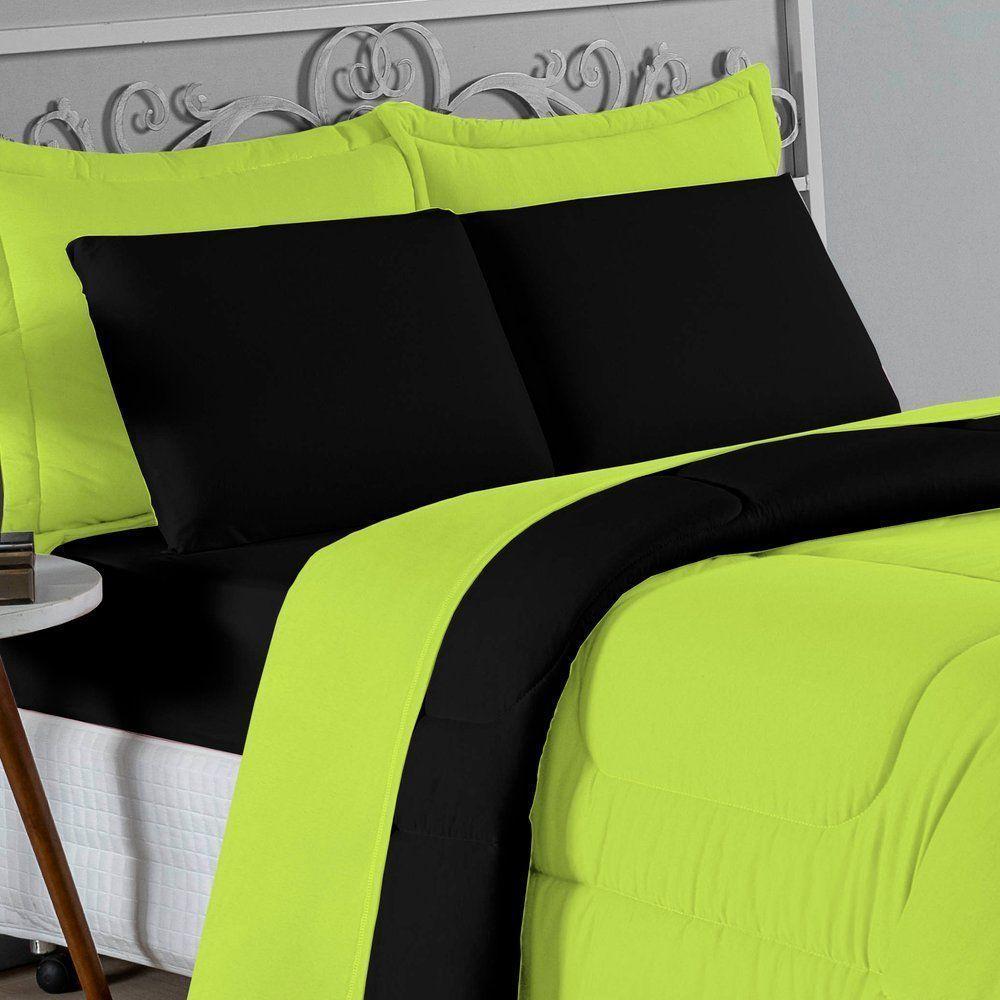 Kit Edredom Dupla Face + Jogo De Lençol Casal Viúva Nobre 6 Peças Malha 100% Algodão - Pistache / Preto