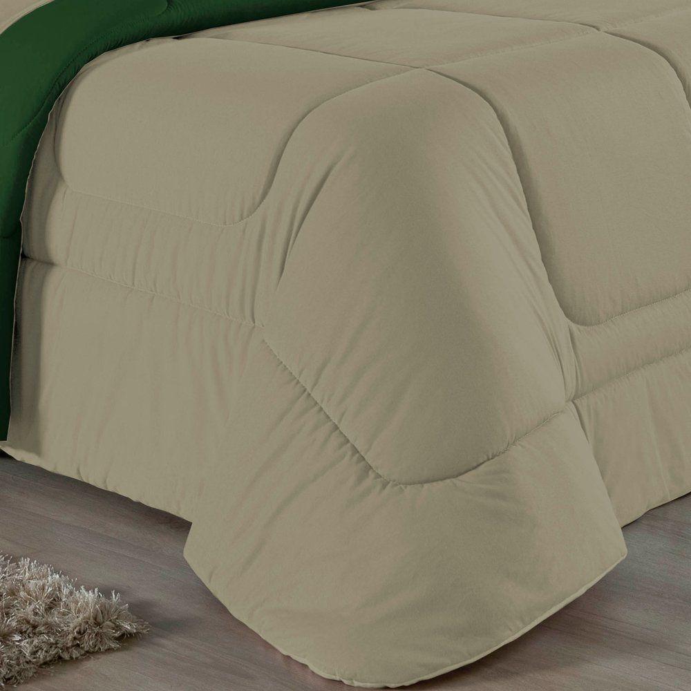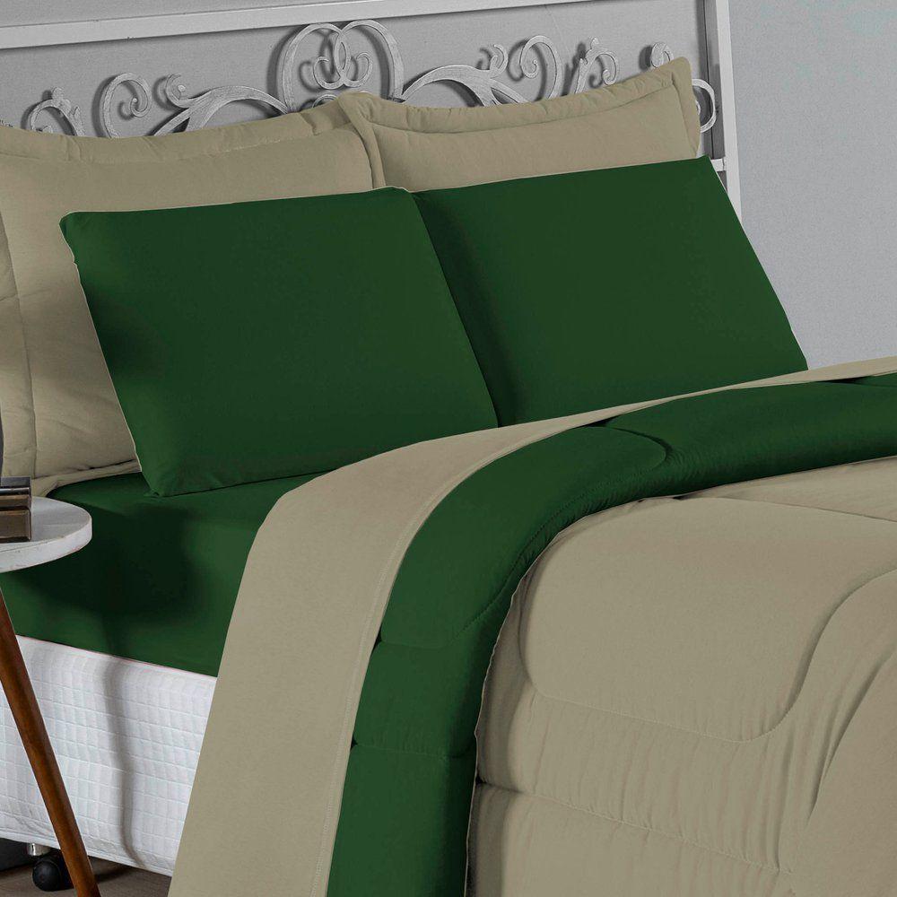 Kit Edredom Dupla Face + Jogo De Lençol Casal Viúva Nobre 7 Peças Malha 100% Algodão - Avelã / Verde-bandeira