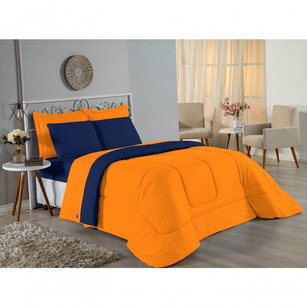 Kit Edredom Dupla Face + Jogo De Lençol Casal Viúva Nobre 7 Peças Malha 100% Algodão - Laranja / Azul-marinhoGaranta a experiência completa de conforto e decoração com o Kit Cama Completa Casal Viúva Nobre 7 Peças. Este conjunto premium inclui todas as peças necessárias para vestir a cama, do lençol de cima ao edredom, tudo em malha 100% algodão. Essa medida especial foi feita para as camas cama casal viúva ou solteiro viúva.Por que este Kit é uma ótima escolha?- Enxoval Completo: Diferente dos kits básicos, este modelo inclui o Lençol de Cima, ideal para dias frescos e para proteger o edredom, garantindo higiene e conforto térmico.- Qualidade da Malha: Feito em 100% Algodão Fio 30/1 Penteado, oferece toque macio, não dá bolinhas e é altamente respirável.- Decoração Impecável: O edredom dupla face e o porta travesseiro matelado decoram a cama, enquanto o jogo de lençóis completo traz a sensação de cama de hotel.- Ajuste Seguro: O lençol de baixo com elástico fixa-se firmemente ao colchão Casal viúva.Produto composto por (Total 07 Peças):Do Kit Edredom (03 Peças):01 Edredom Casal Viúva Dupla Face: 2,00m x 2,20m02 Porta Travesseiro Matelado: 50cm x 70cmDo Jogo de Lençol (04 Peças):01 Lençol de Cima (Virol) Casal 2,40m x 2,20m01 Lençol Casal Viúva com Elástico 1,28m x 1,98m x 30cm02 Fronha: 70cm x 50cmComposição:Tecido (Todas as peças): Malha 100% Algodão - Fio 30/1 PenteadoEnchimento (Edredom e Porta Travesseiro): 100% Poliéster (Edredom com fibra siliconada)Forro (Apenas Porta Travesseiro): 100% Polipropileno