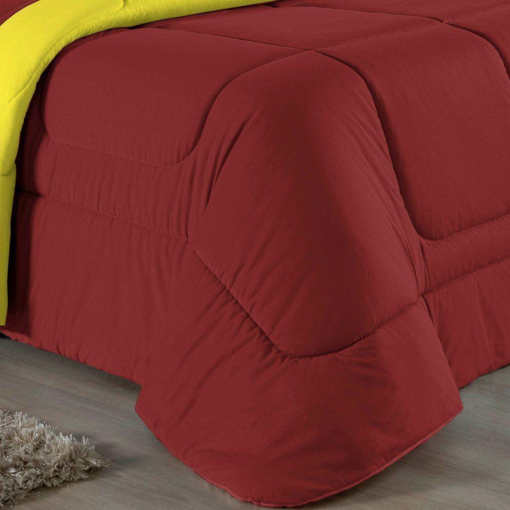 Edredom King Nobre 1 Peça Dupla Face 2,50m X 2,90m Malha 100% Algodão - Vinho / Amarelo