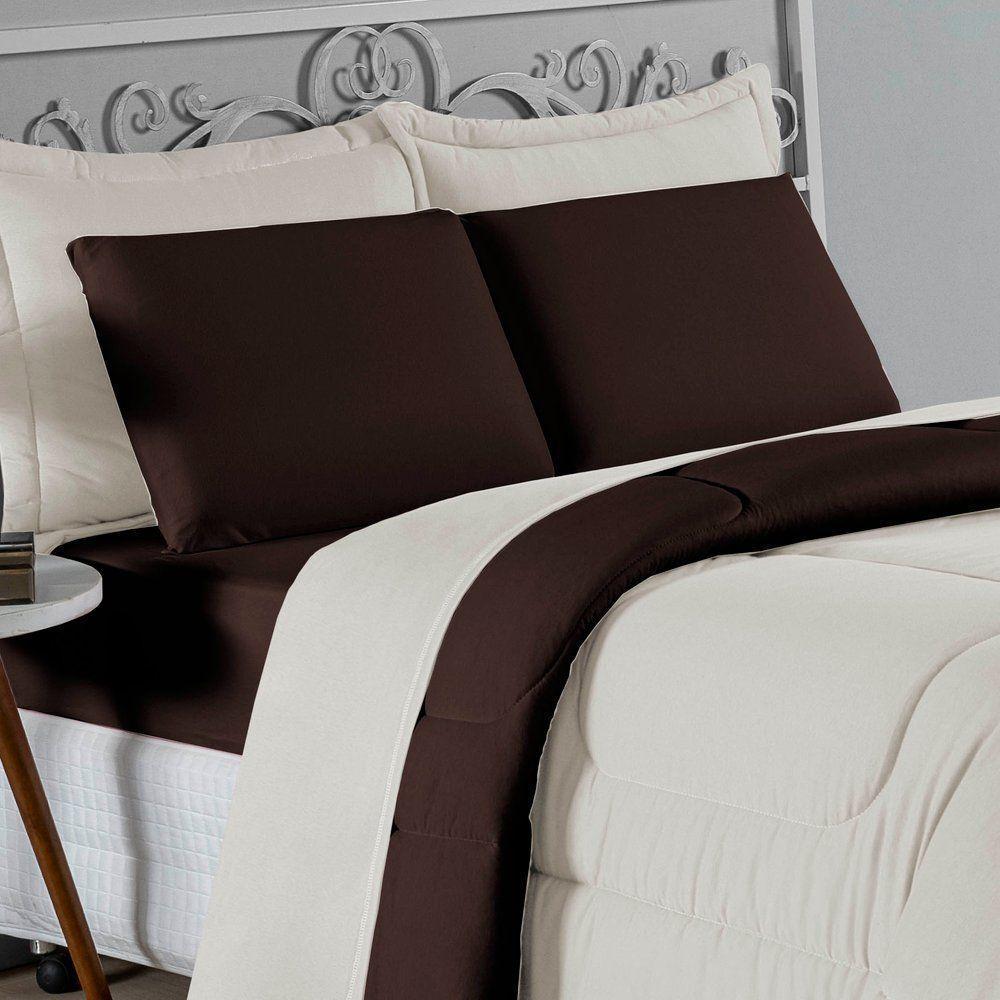 Kit Edredom Dupla Face + Jogo De Lençol Casal Viúva Nobre 7 Peças Malha 100% Algodão - Palha / Marrom