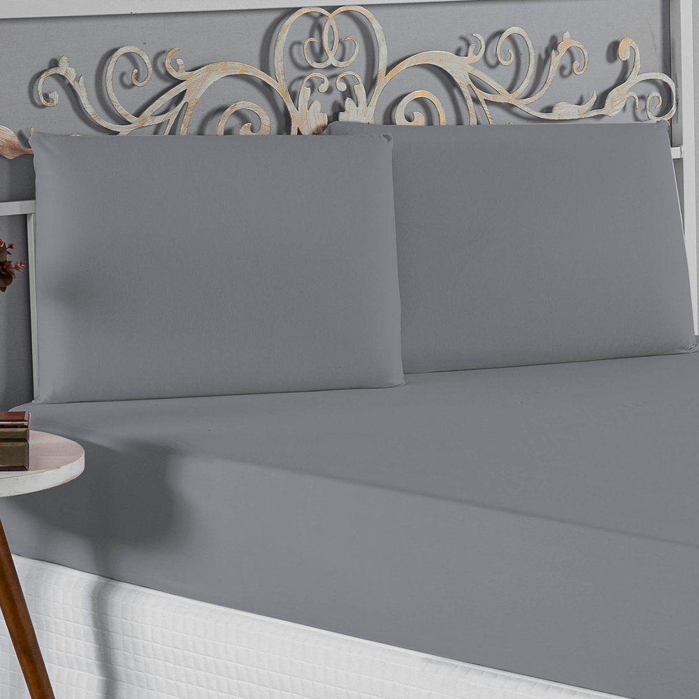 Jogo De Cama Casal Nobre 3 Peças Lençol Com Elástico De 30cm De Altura Malha 100% Algodão - Cinza