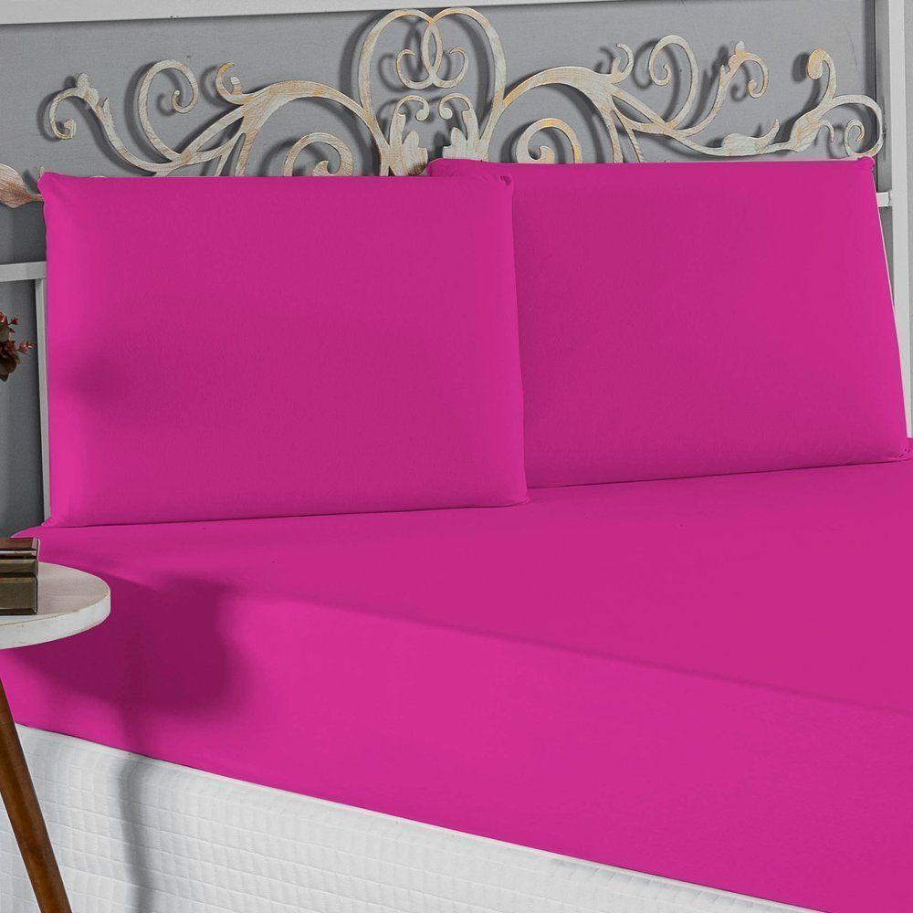 Jogo De Cama Casal Nobre 3 Peças Lençol Com Elástico De 30cm De Altura Malha 100% Algodão - Pink