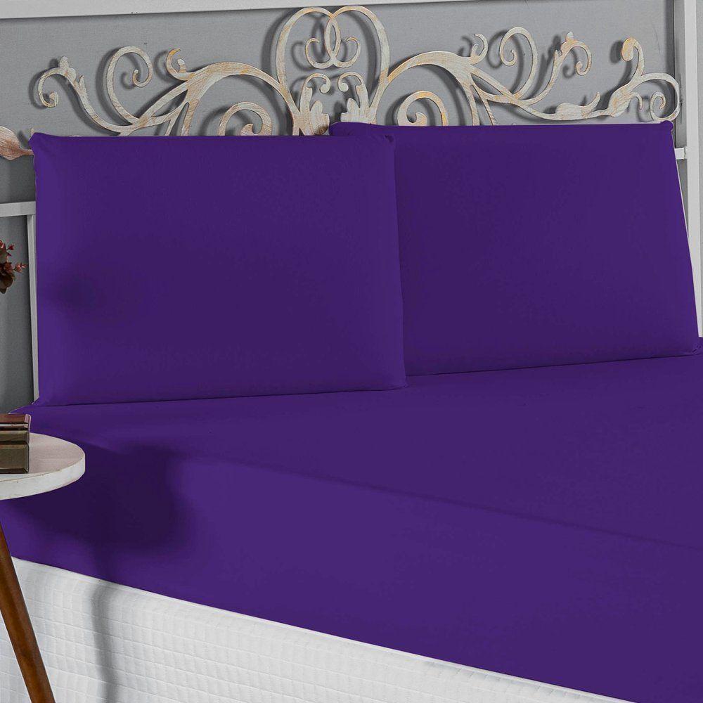 Jogo De Cama Casal Nobre 3 Peças Lençol Com Elástico De 30cm De Altura Malha 100% Algodão - Roxo