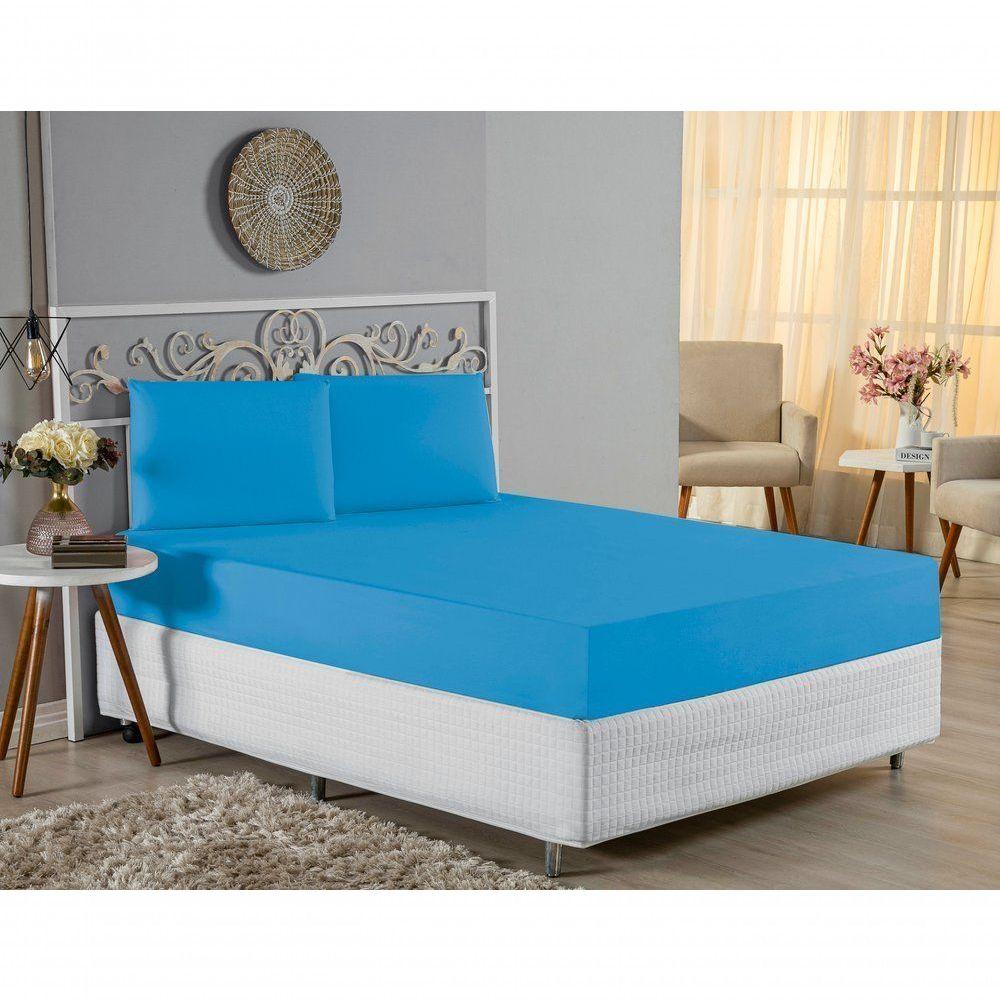 Jogo De Cama Casal Nobre 3 Peças Lençol Com Elástico De 30cm De Altura Malha 100% Algodão - Turquesa