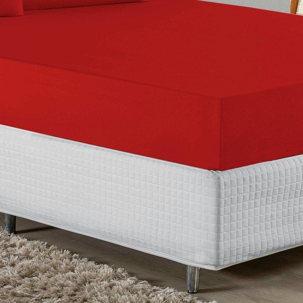 Jogo De Cama Casal Nobre 3 Peças Lençol Com Elástico De 30cm De Altura Malha 100% Algodão - Vermelho