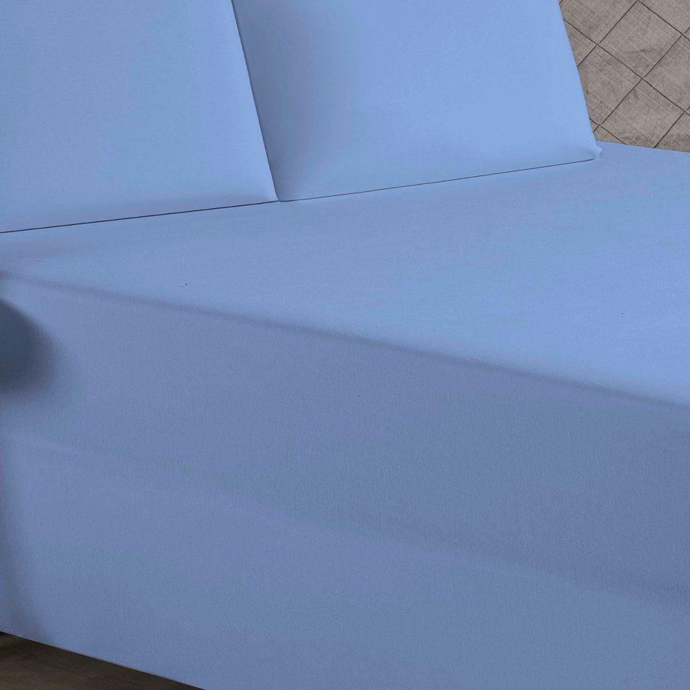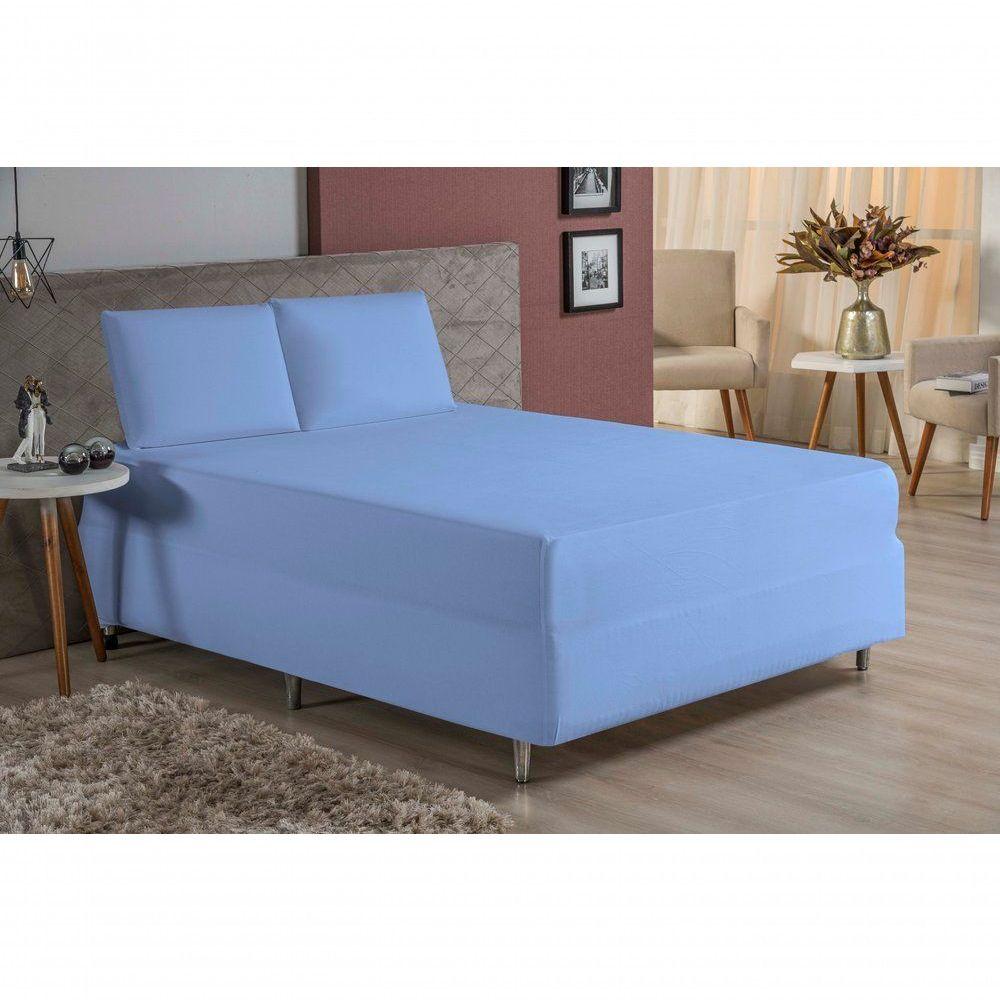 Jogo De Cama Casal Nobre 3 Peças Luva De Box 55cm De Altura Malha 100% Algodão - Azul-bebê