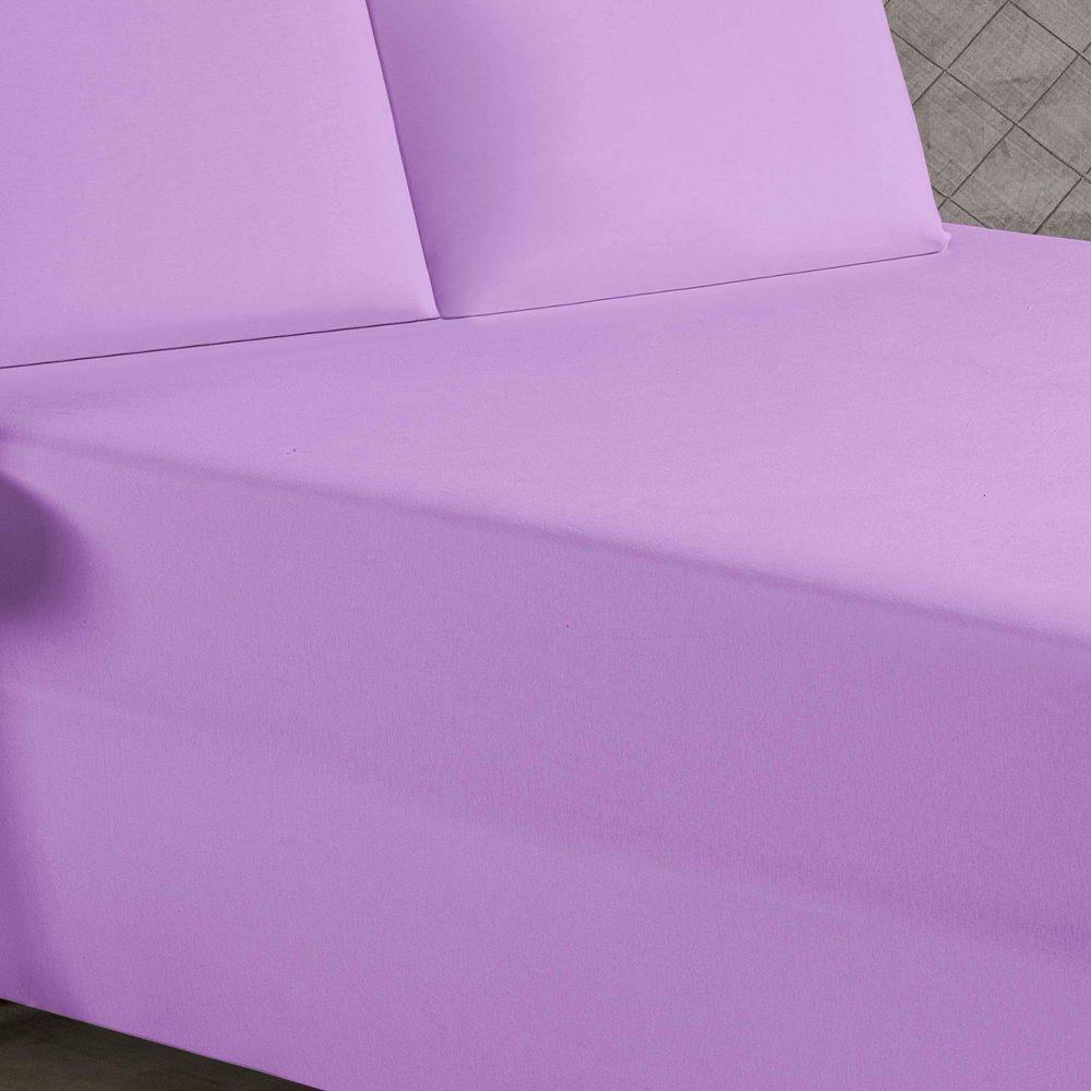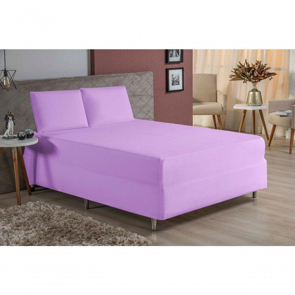 Jogo De Cama Casal Nobre 3 Peças Luva De Box 55cm De Altura Malha 100% Algodão - Lilás